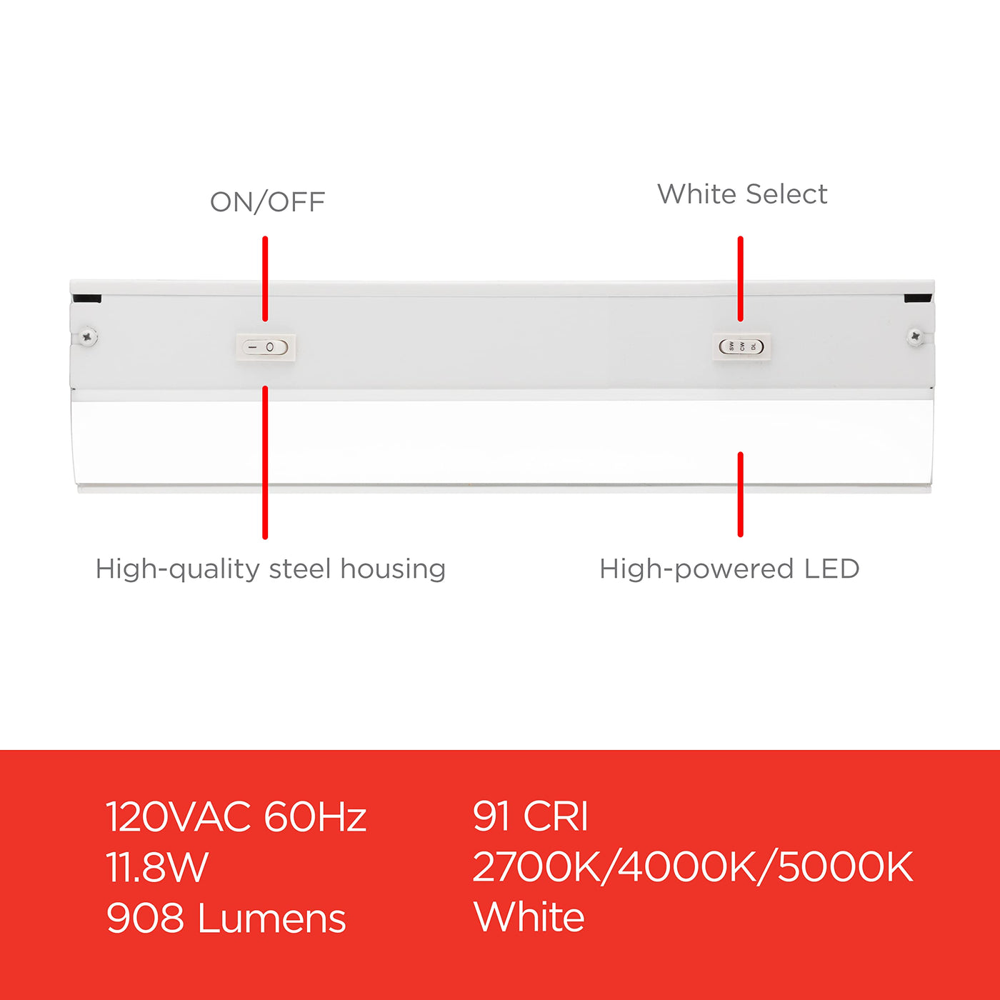 Ultrapro 24 Inch Hardwired Under Cabinet Lights, 3 Color Settings - 2700K/4000K/5000K - Warm White, Cool White, And Daylight, Un