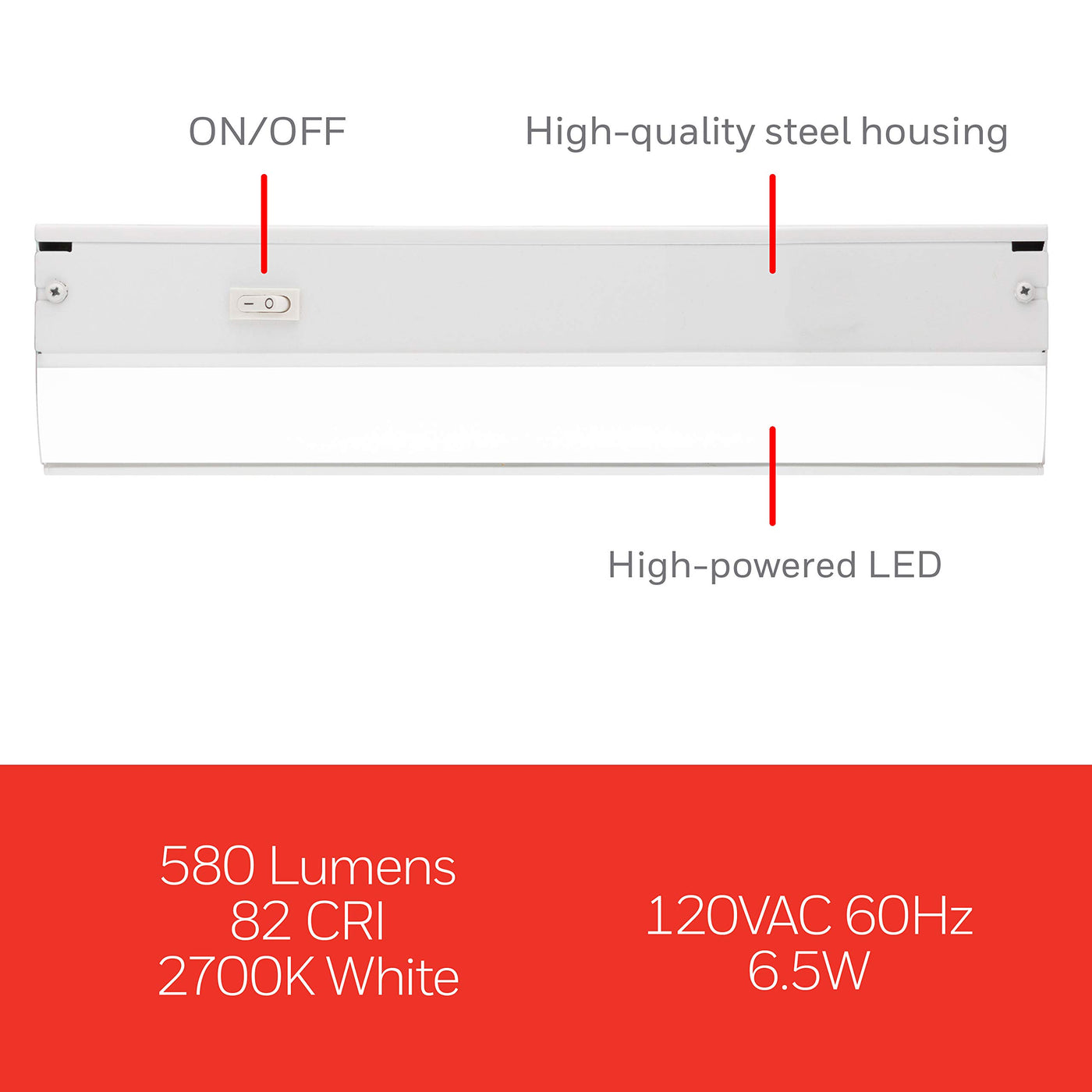 Ultrapro 24" Hardwired Under Cabinet Lights, 2700K Warm White, Kitchen Lighting, White