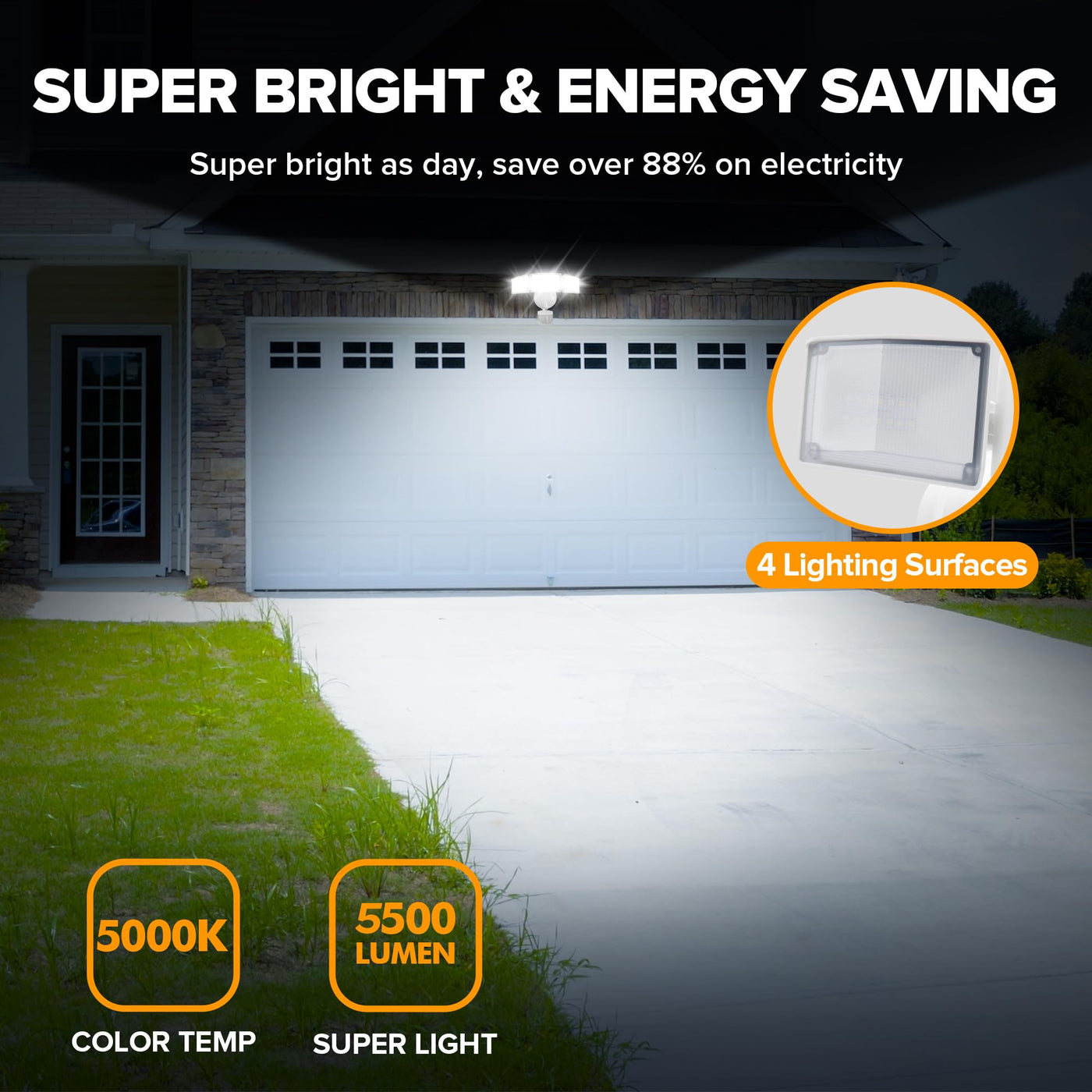 Ume 5500 Lumen Led Security Lights Motion Sensor Light Outdoor, 5000K Daylight, Ip65 Waterproof, Dusk To Dawn, Motion Detector Flood Light For Garage, Yard, Porch (White)