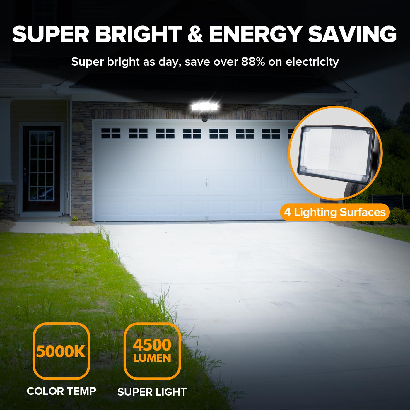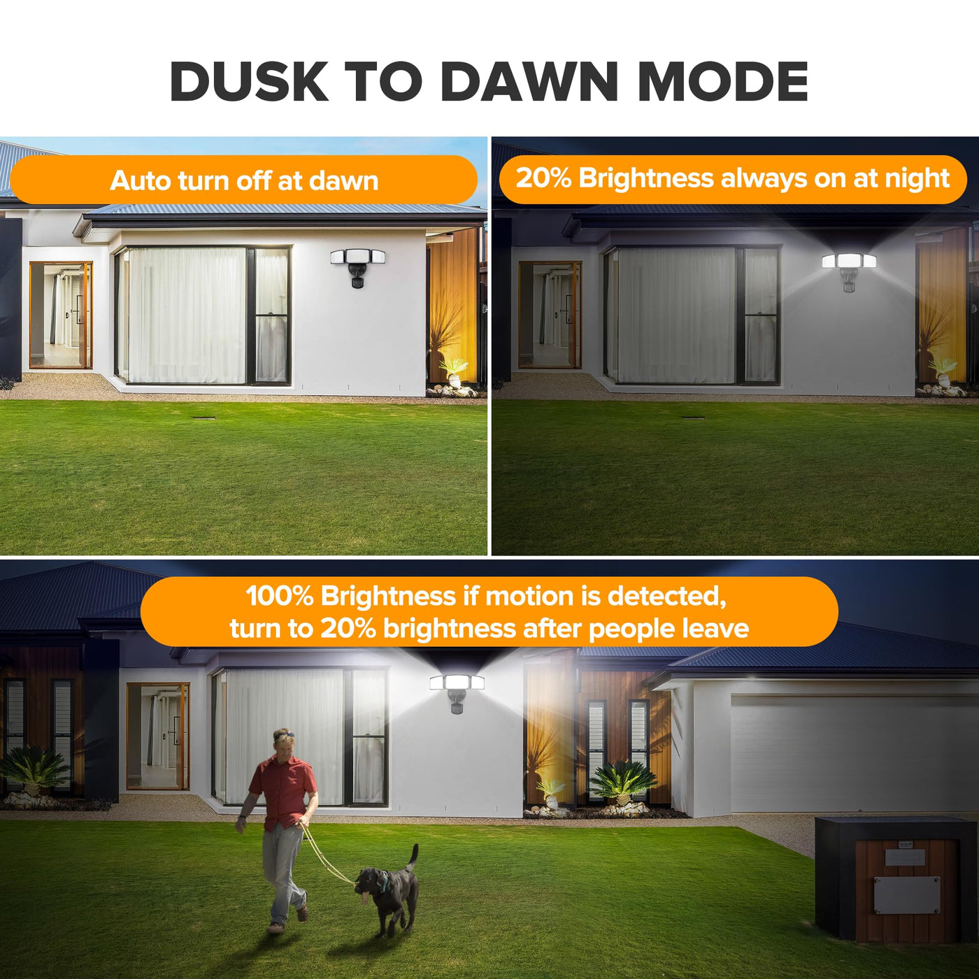 Ume 49W Led Security Lights Motion Sensor Light Outdoor, 5000K Daylight, Ip65 Waterproof, Dusk To Dawn, 3 Head Motion Detected F