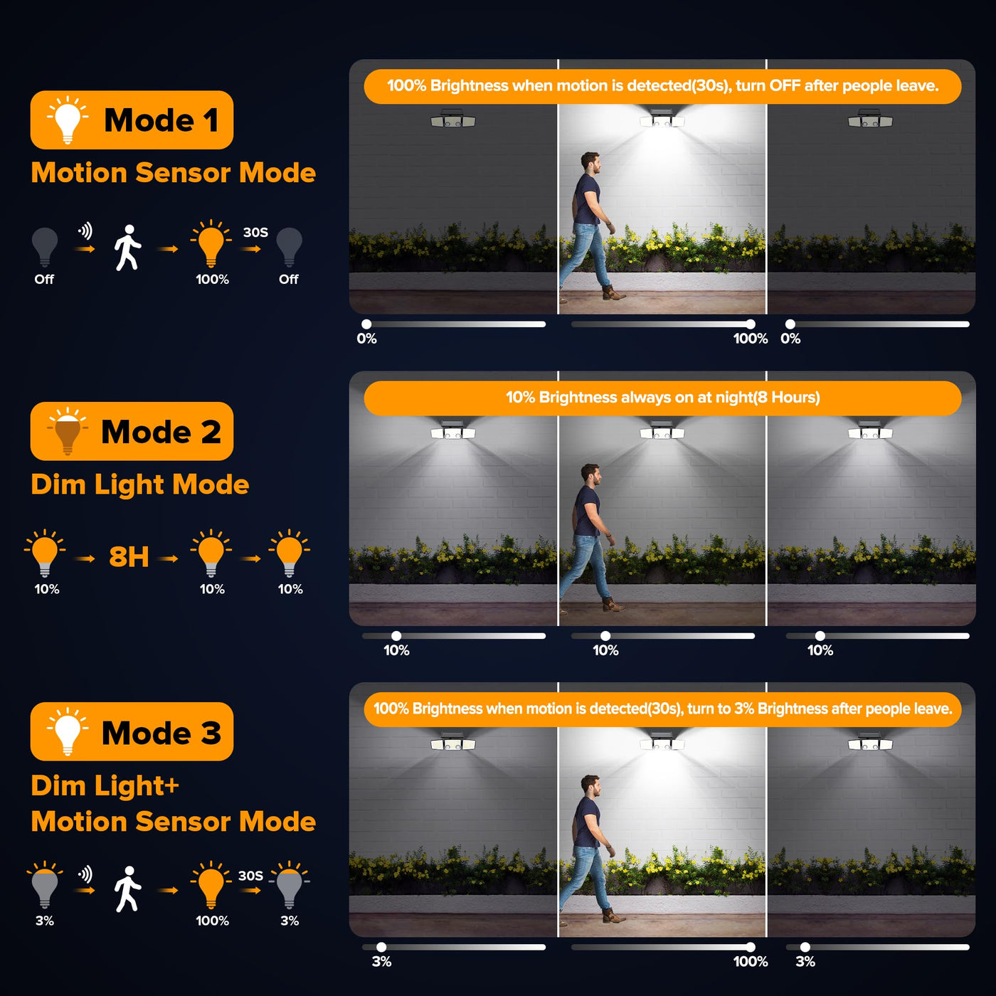 Q: What makes the UME Solar Outdoor Lights different from other outdoor solar lights?A: The UME Solar Outdoor Lights stand out due to their dual motion sensor design, which enhances detection capabilities with a wider angle and longer range. Additionally, with 3000 lumens of brightness and three adjustable modes, they provide superior illumination compared to many other outdoor solar lighting options.