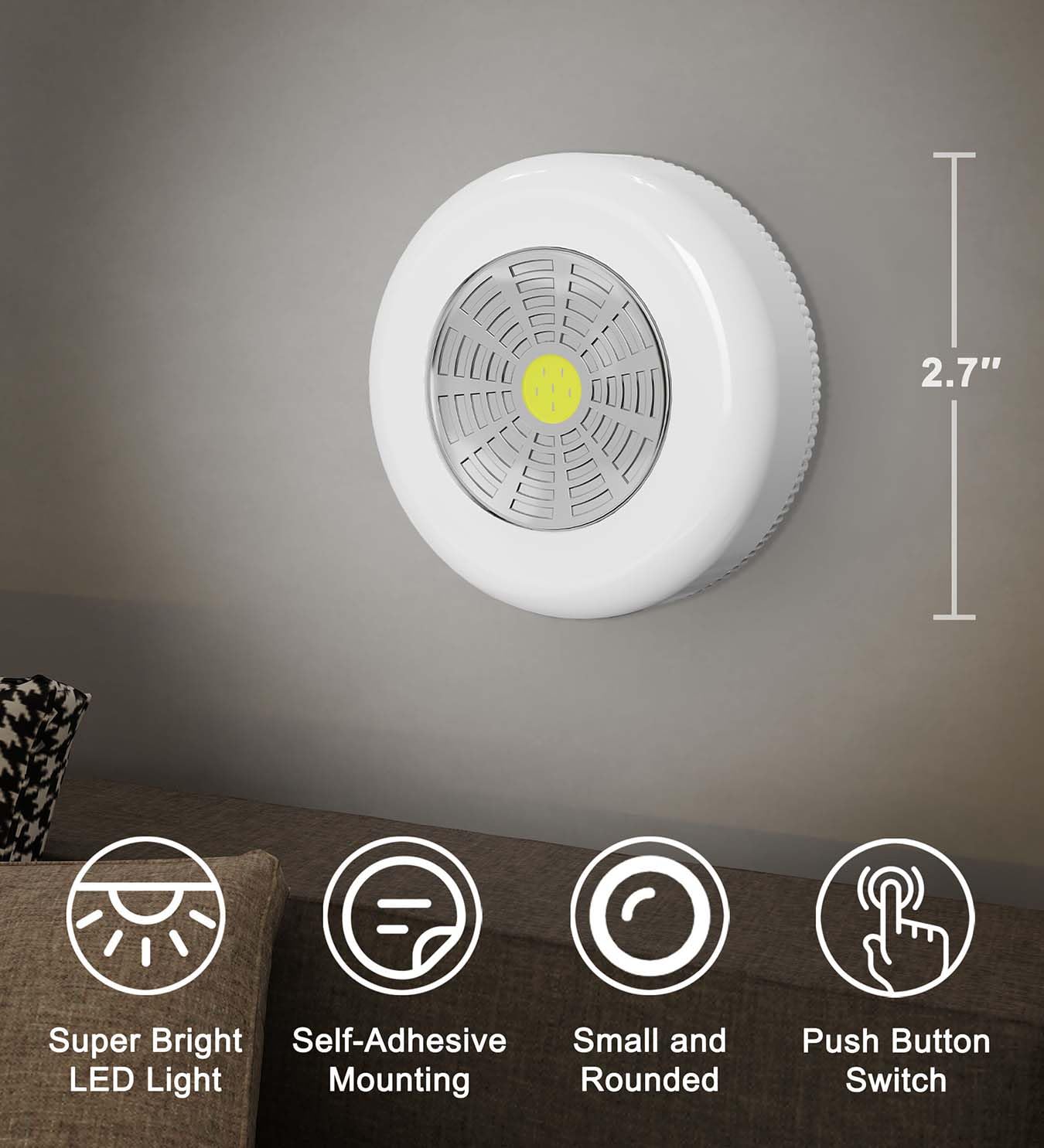 UMECORE Tap Light Push Button Battery Operated Puck Lights, 5 Pack, Acrylonitrile Butadiene Styrene, Under Cabinet Stick-On Lighting