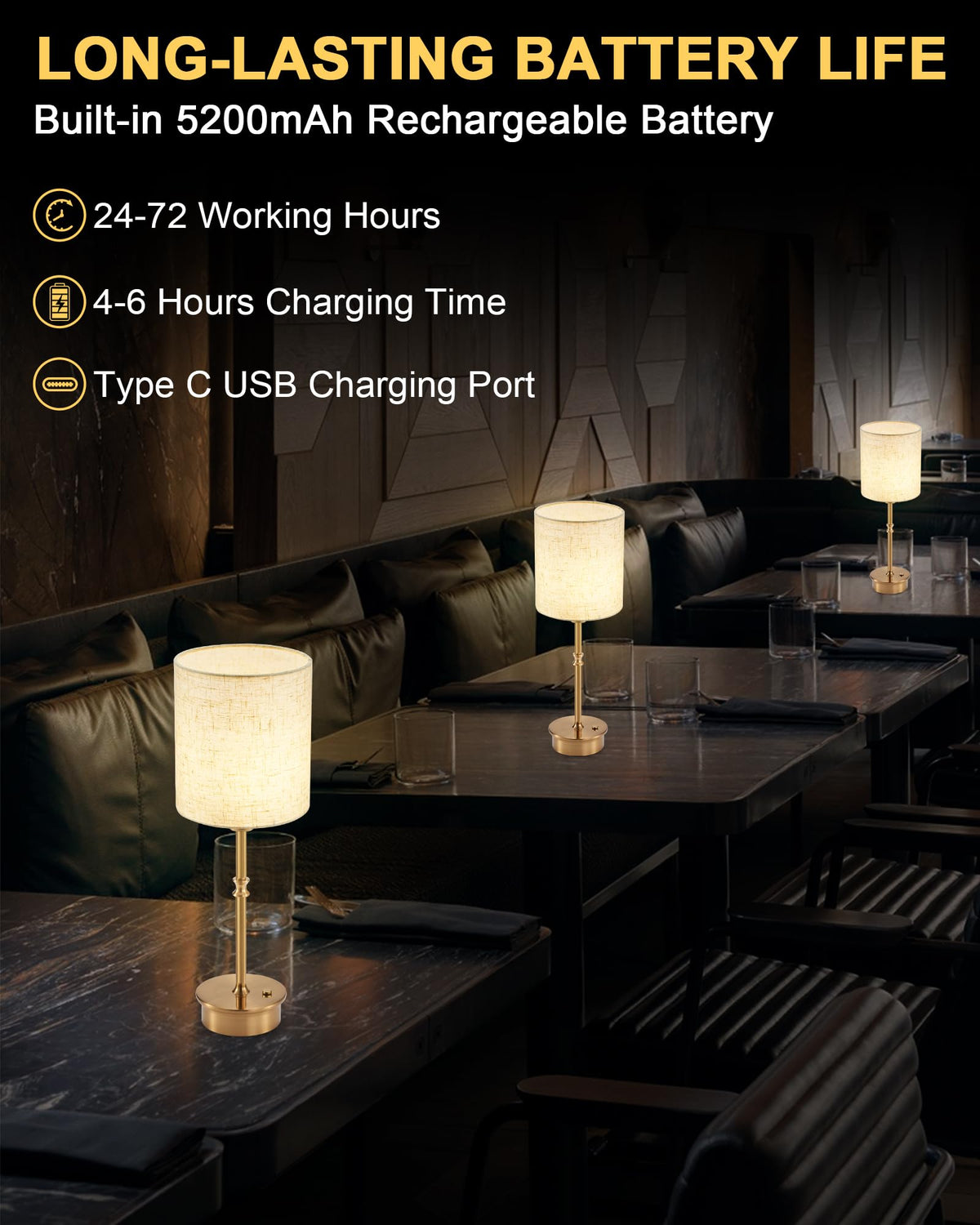 This lamp features a sophisticated antique brass base paired with a soft linen shade, creating a classic look that complements a range of decors. Crafted for portability, it operates without the constraints of a power cord, allowing for flexible placement in any room. The built-in 5200mAh rechargeable battery ensures long-lasting illumination, while the Type-C charging capability allows for quick replenishment. With a charging time of only 4-6 hours, you can enjoy up to 72 hours of continuous light.