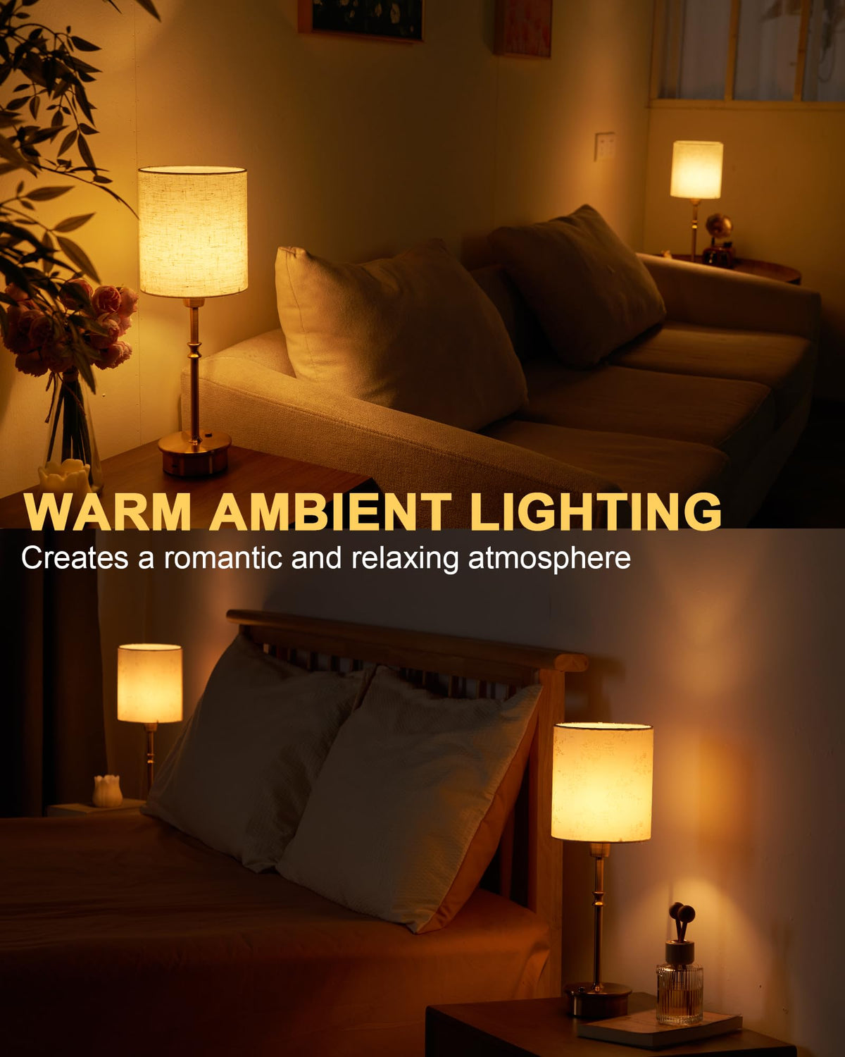 Q: What kind of ambiance does the lamp provide?A: The lamp emits a warm glow at two thousand seven hundred Kelvin, creating a cozy and inviting atmosphere in any room.