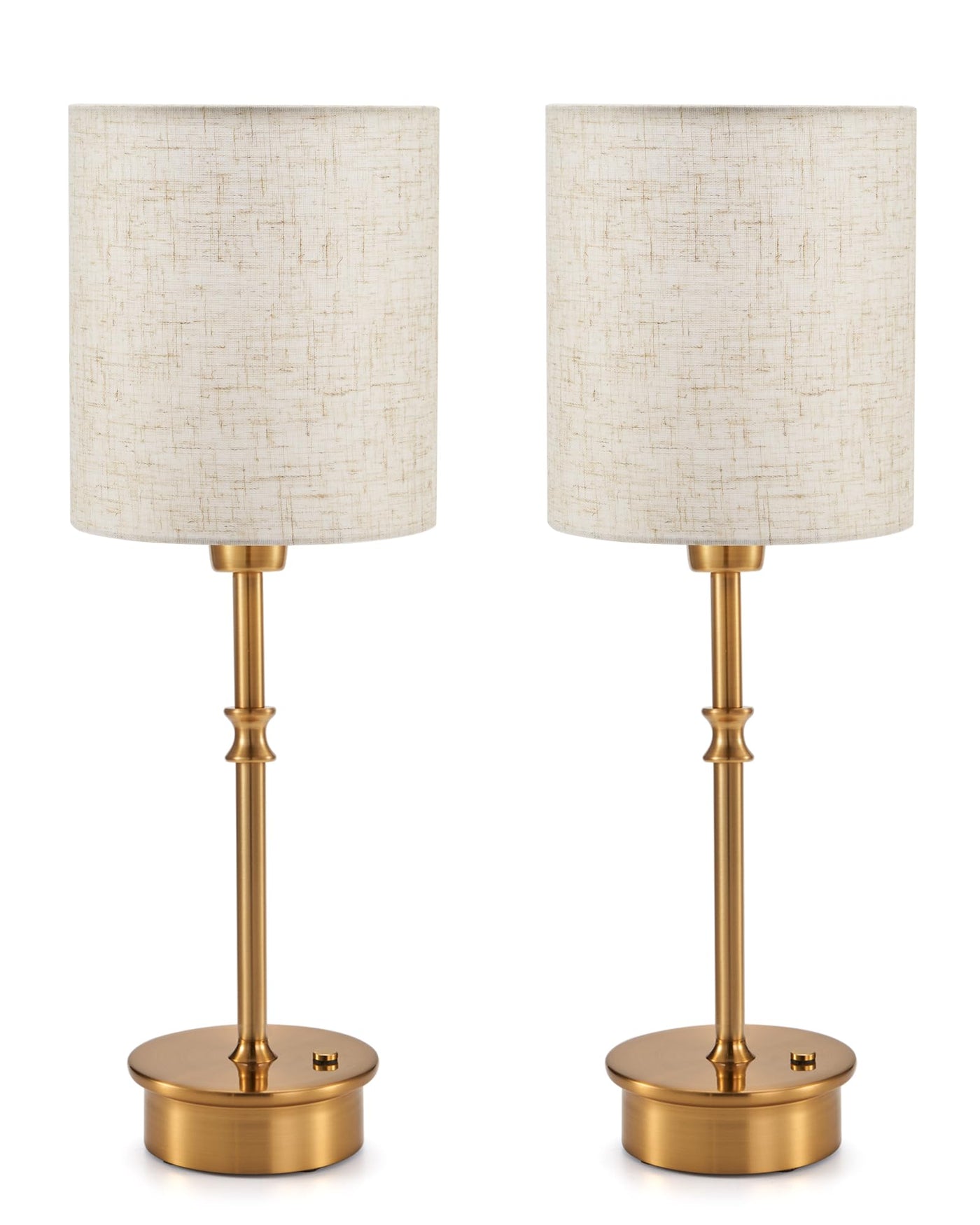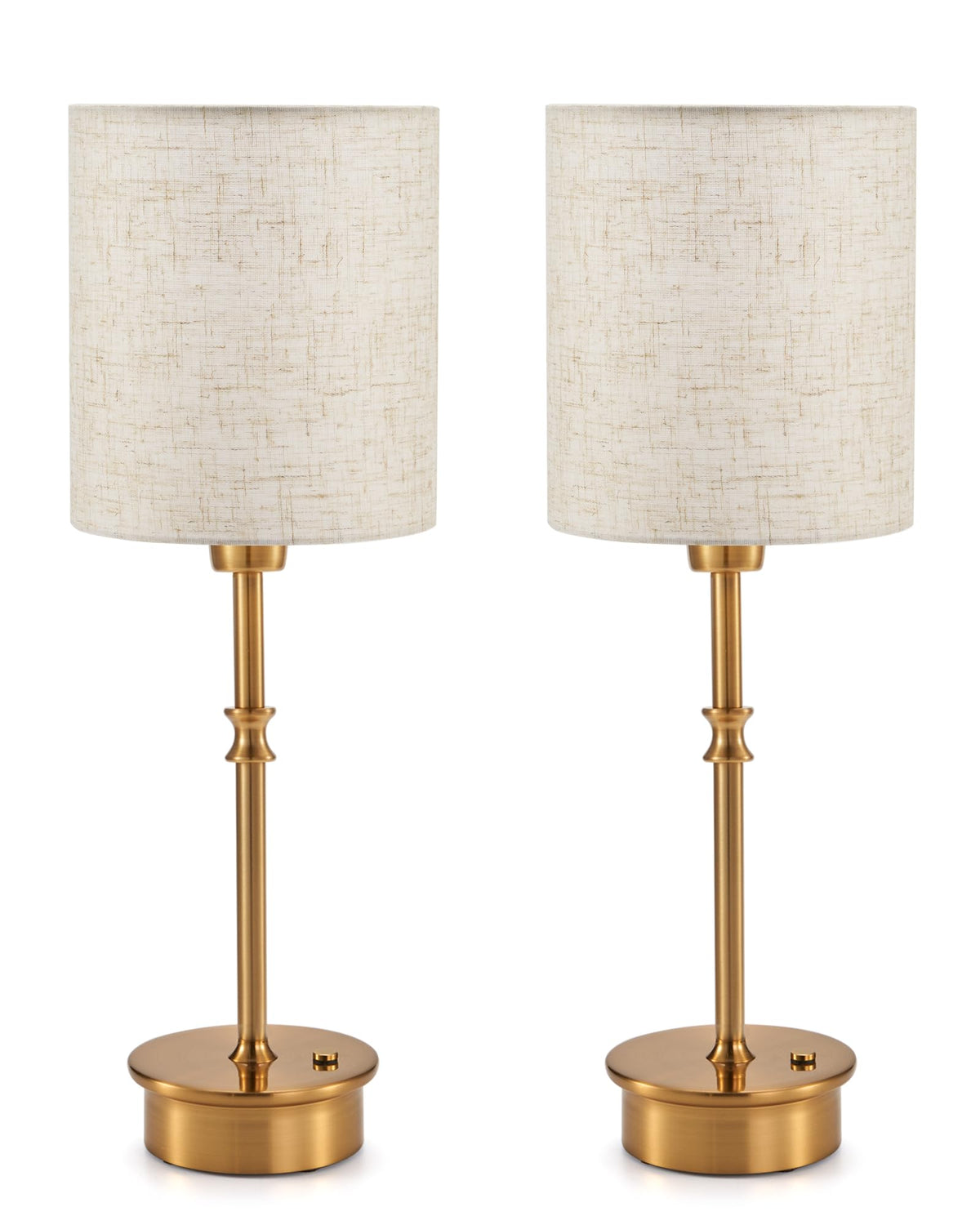 UMEXUS 16in Rechargeable Cordless Table Lamp Set of 2, Dimmable, Touch Control, Antique Brass-Linen Shade, Model 20633