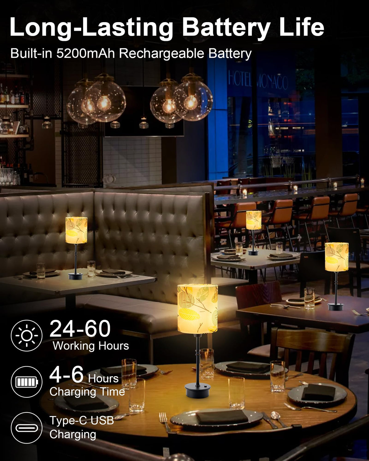 This Cordless Table Lamp Is The Perfect Blend Of Modern Design And Practicality. Featuring A Sleek Fabric Shade And A Sturdy Metal Base, The Touch Table Lamp Adds Elegance And Sophistication To Any Space. This Battery Powered Table Lamp Can Be Used As A Nightstand Lamp, Bedside Lamp, Night Table Lamp, Or Bedroom Table Lamp. This Rechargeable Table Lamp Is Designed For Ultimate Convenience. It Charges Fully In 4-6 Hours, Offering Up To 24-72 Hours Of Lighting On A Single Charge, Depending On The Brightness Level. The Dimmable Table Lamp Offers A Touch Control Design For Easy Operation. With 3 Different Brightness Levels, It Allows You To Customize The Lighting To Suit Your Needs, Whether You'Re Reading, Relaxing, Or Setting The Mood For A Gathering. With A 2700K Warm Light, This Battery Operated Table Lamp Creates A Cozy, Inviting Atmosphere That'S Perfect For Any Room. The Combination Of Modern Aesthetics, Convenience, And Functionality Makes This Portable Table Lamp The Perfect Addition To Your Home. The Small Table Lamp Is Ideal For Nightstands, Bedside Tables, Kitchen Counters, Side Tables, End Tables, Sofa Tables, Dining Tables, Bathroom Counters, Entryway Tables, Hallway Tables, Patio Tables, Buffet Tables, Coffee Tables And Outdoor Tables. With Its Stylish Look And Practical Features, This Led Table Lamp Brings Both Style And Comfort To Any Space.