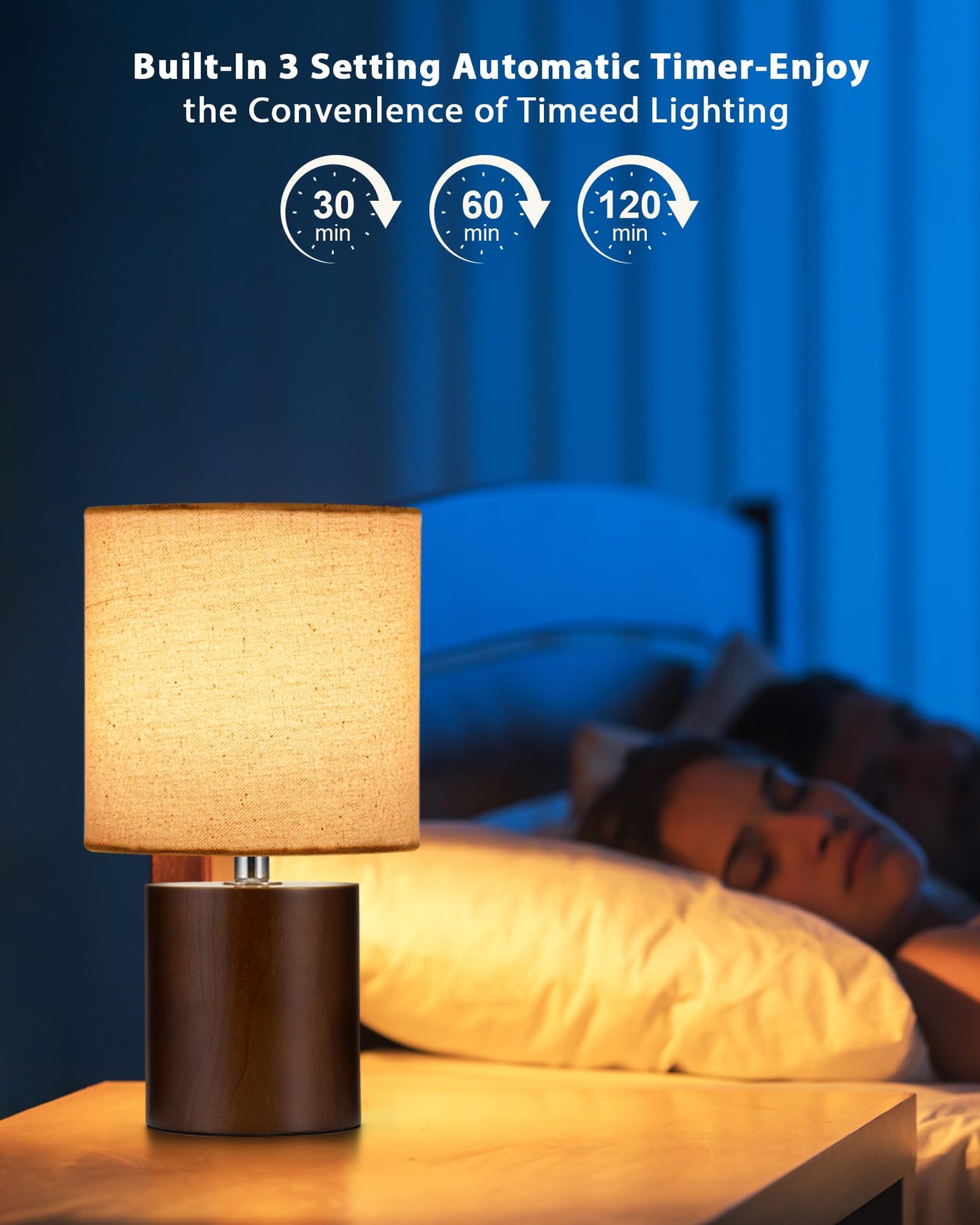 Umexus Rechargeable Cordless Table Lamp With Timer, Remote, Dimmer, Wood Small Battery Operated Lights, Warm Bedroom Nightstand