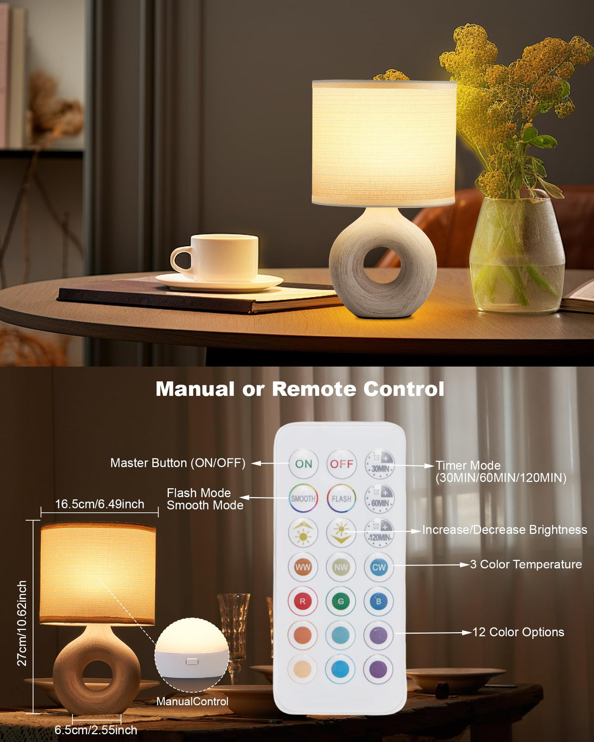 Q: What type of battery does the remote control require?A: The remote control for the UMEXUS Small Cordless Table Lamp requires 2 AAA batteries, which are included with your purchase. This allows for convenient control over the lamp's brightness and color settings from a distance.