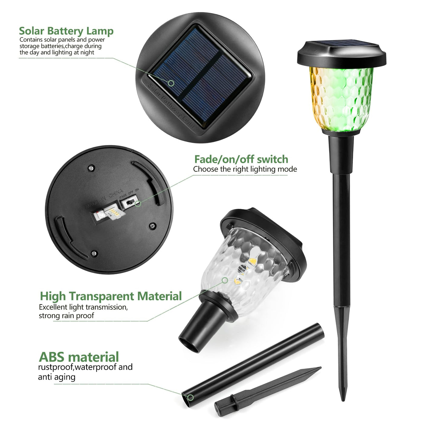 Umickoo Solar Outdoor Lights Garden, Color Changing Solar Lights Colorful Bright Glass Pathway Lights,Waterproof Solar Powered L