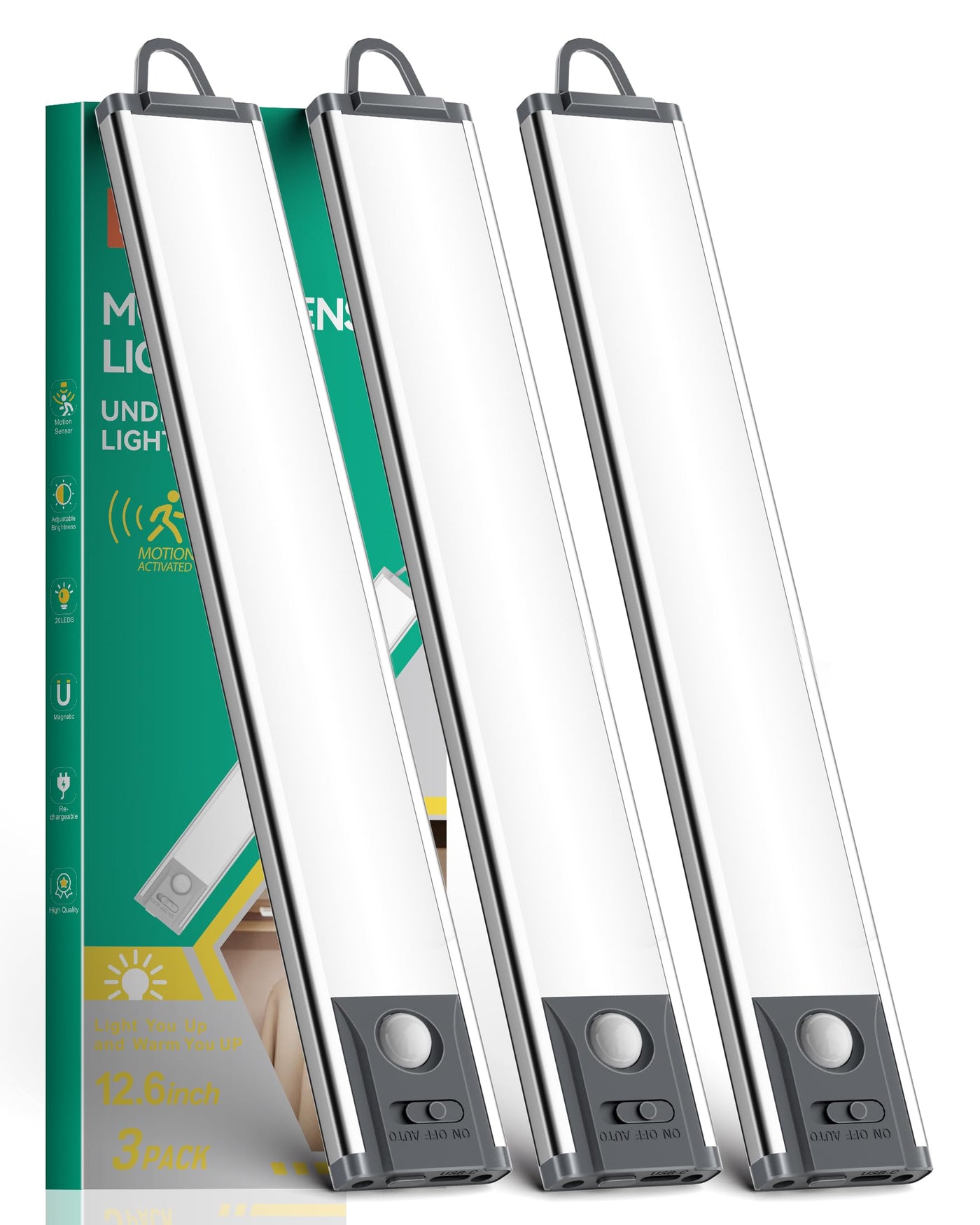 Under Cabinet Lighting 12.6 Closet Light 1500Mah Battery Operated Lights Dimmable Motion Sensor Light Indoor Magnetic Lighting 3