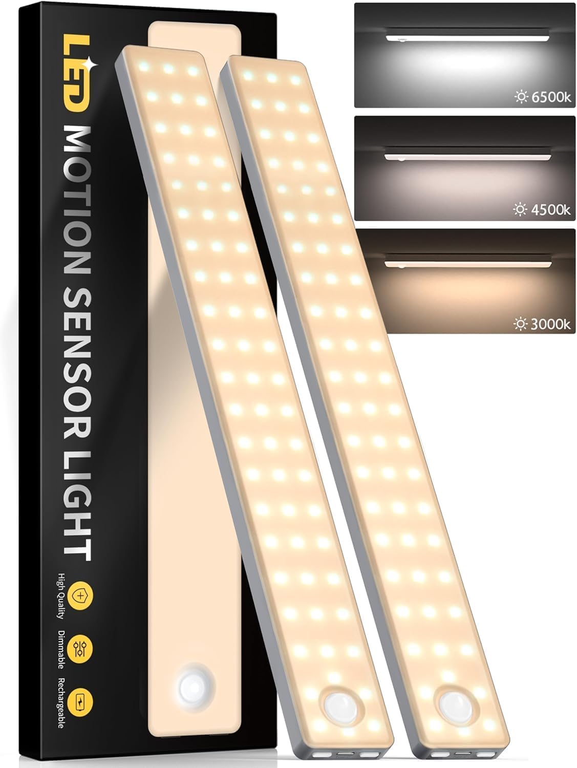 Under Cabinet Lighting, 3 Color Temperatures Motion Sensor Light Indoor, Usb Rechargeable Battery Operated Closet Lights, Wirele