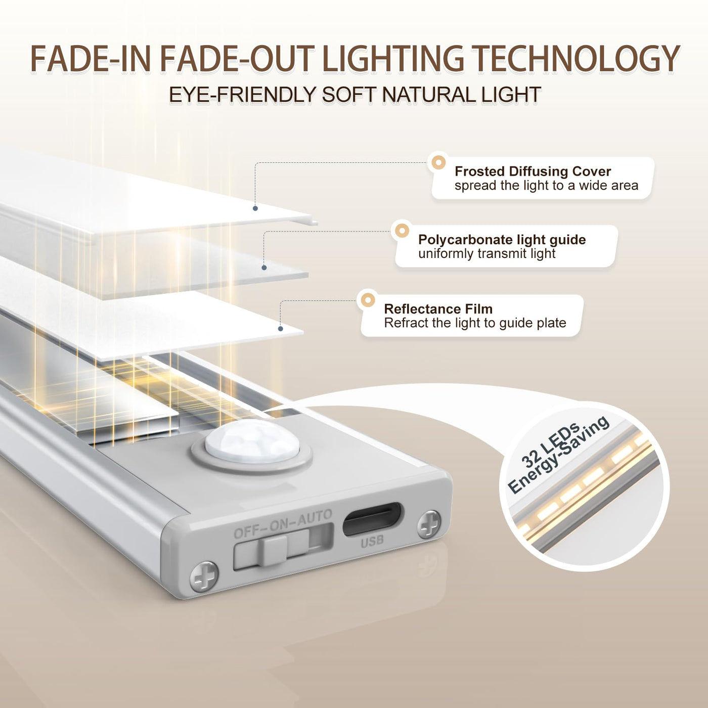 Light Up Every Corner With These Versatile Under Cabinet Lights. Equipped With 32 Led And A Motion Sensor That Automatically Turns On When You Get Within 120? And 10 Feet, These Indoor Motion Sensor Lights Provide Plenty Of Light For Your Kitchen, Closet, Bedroom, Cabinet, Basement, Pantry, Hallway, Or Stairs. The Rechargeable Batteries And Magnetic Design Make Installation Easy With No Wires Or Tools Required, So You Can Stick The Cabinet Lights Anywhere You Need Extra Light. These Under Cabinet Lighting Wireless Come In Packs Of 6 To Ensure You Have Enough Lights To Illuminate Multiple Areas. The Bright Warm White Light Creates A Cozy Atmosphere. Up To 5-6 Hours Of Use On A Single Charge. These Closet Lights Are 8 Inches Long And Fit Perfectly Under Cabinets Or In Tight Spaces. Give Your Home A New Look With These Convenient, Energy Efficient Under Cabinet Lights