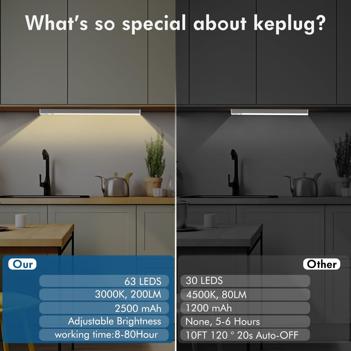 Q: What are the recommended applications for the KEPLUG Under Cabinet Lights?A: The KEPLUG Under Cabinet Lights are versatile and can be used in various settings, including kitchens, bedrooms, closets, stairwells, workshops, garages, and more. They are perfect for any place where you need additional lighting without the hassle of wiring.