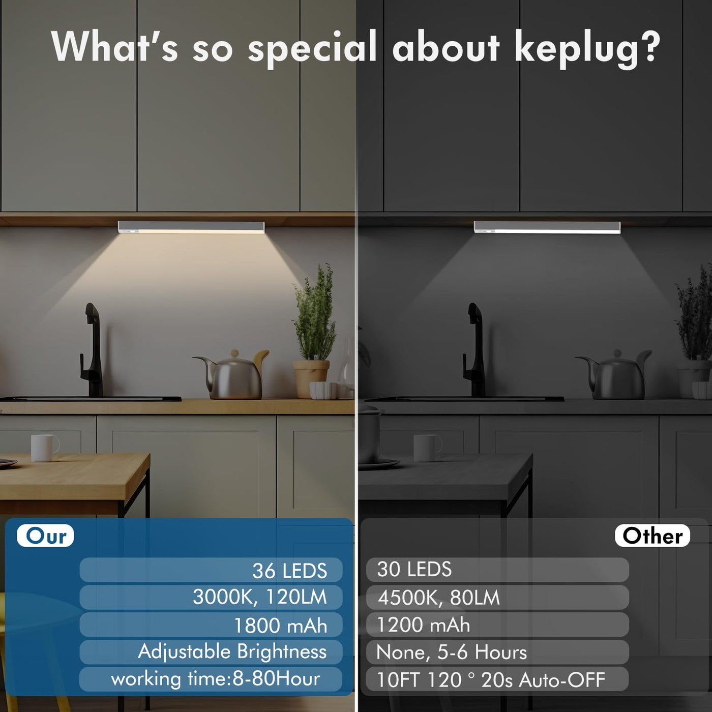 Q: How do the motion sensors in the Under Cabinet Lights work?A: The Under Cabinet Lights feature an upgraded PIR motion sensor that detects human movement within a range of 10 feet and an angle of 120°. The light turns on automatically when it senses motion and will turn off after 20 seconds of no movement.