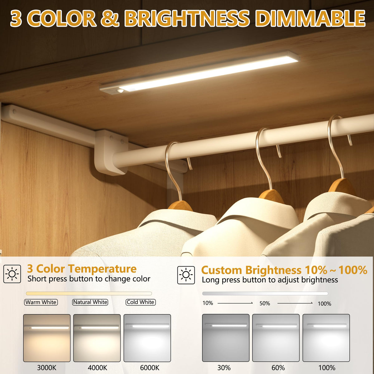 Q: How do you install the Under Cabinet Lights?A: These lights can be easily installed using built-in magnets that allow them to stick to any ironwork. For non-iron surfaces, iron sheets with tape are included for secure attachment. The compact size and ultra-thin design make them versatile for various locations such as cabinets, wardrobes, and kitchens.