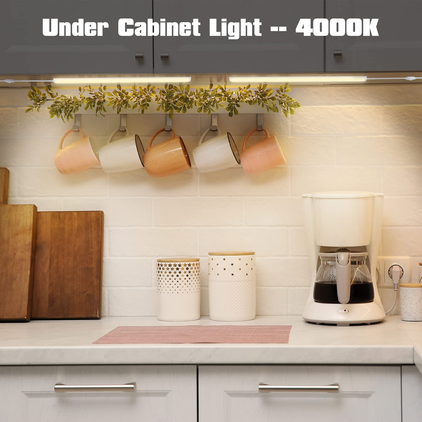 Under Cabinet Lights Plug In, 3 Pcs 12 Inch Thin Under Cabinet Lighting, Natural White Under Counter Lights For Kitchen, Dimmabl