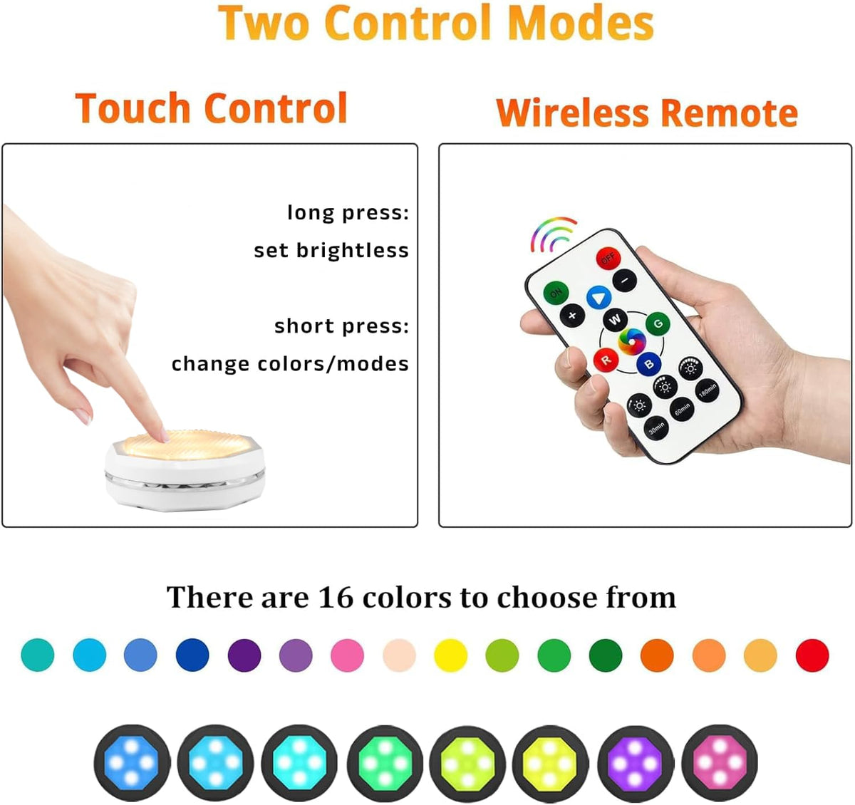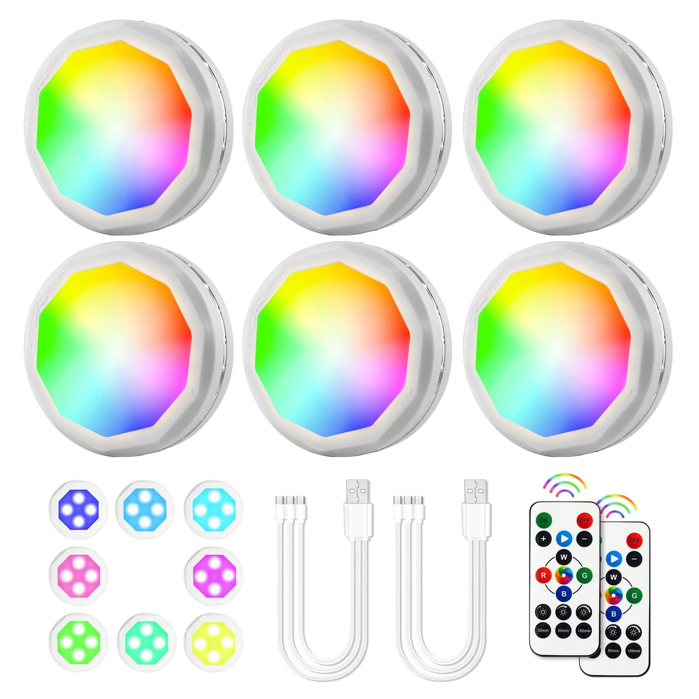 Under-Cabinet-Lights Rechargeable Puck Lights 6 Pack Led Closet Lights With Remote 16 Colors Usb Charging Battery Operated Night