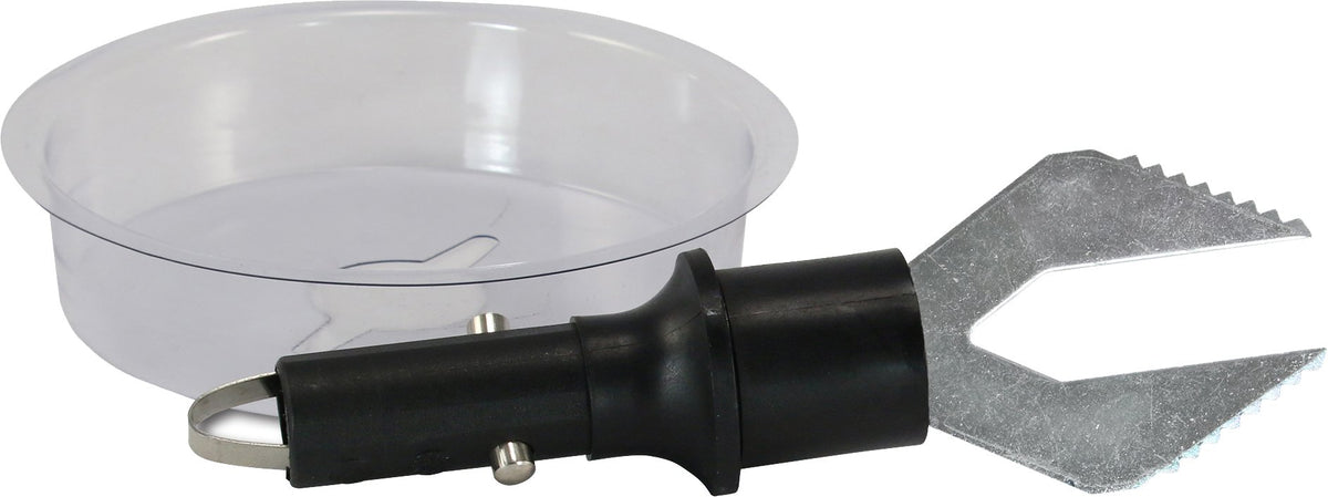 Unger's Broken Bulb Changer removes broken bulb bases safely and easily. It comes fully insulated with a plastic glass catcher and Zinc-plated steel fork for safety. This bulb changer attaches to any telescopic pole with removable cone for extended reach without the need for a ladder or stool. Can be used with Unger Telescopic Pole models 961880, 960370, and 91012. Unger guarantees to replace any Unger Professional branded product found defective in material, construction, or workmanship.
