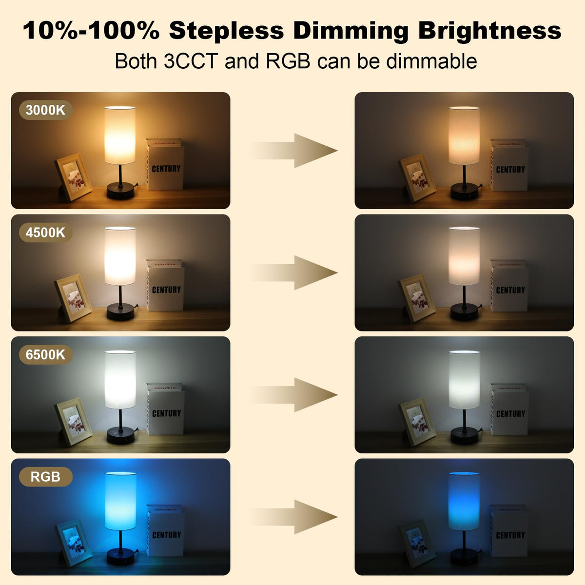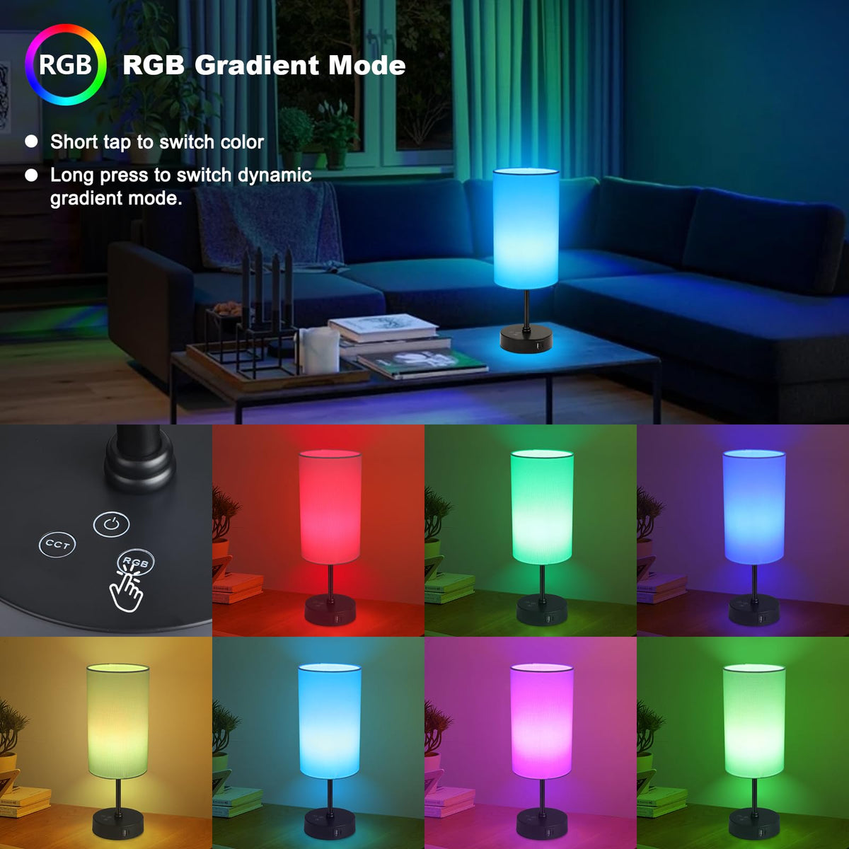 Unicozin Table Lamp,3 Cct 3000K/4500K/6500K & Rgb Color Changing,Stepless Dimmable Touch Control Bedside Lamp For Reading,Ambien