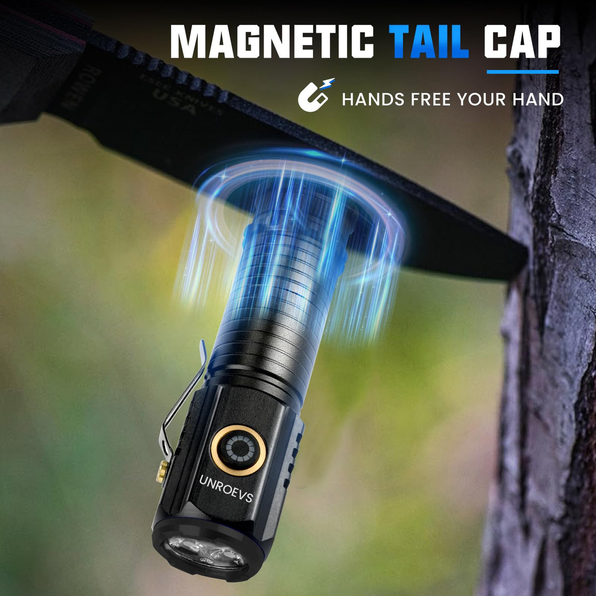 Q: Is the UNROEVS flashlight suitable for outdoor activities like camping and hiking?A: Yes, the UNROEVS flashlight is ideal for outdoor activities such as camping, hiking, and emergency situations. Its small size, lightweight design, and magnetic base make it versatile for various uses.