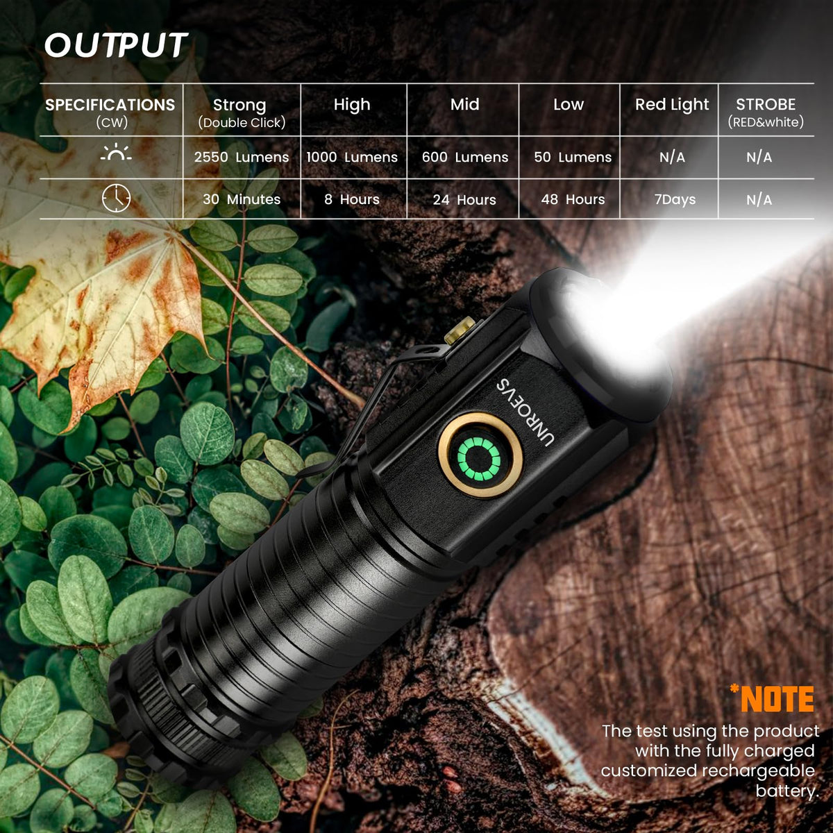 Unroevs 2550 Lumen 2-In-1 Small Flashlight,Led Rechargeable Flashlights High Lumens Usb C Charge,Small Powerful Flashlights With