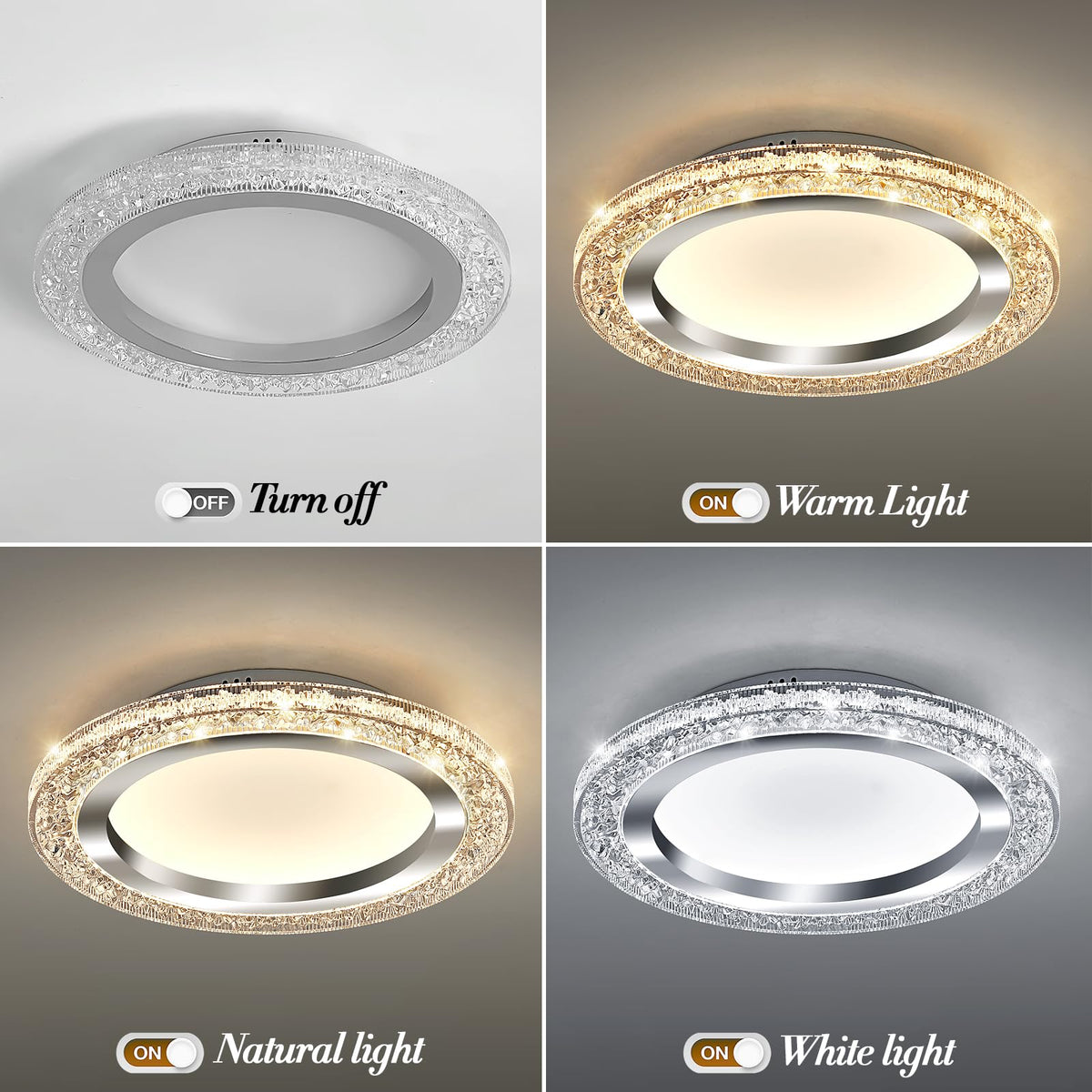 Uofus 32W Led Flush Mount Ceiling Light Chrome 15.7Inch Modern Round Ceiling Light Fixture 3000K-6000K Dimmable Super Bright Cir