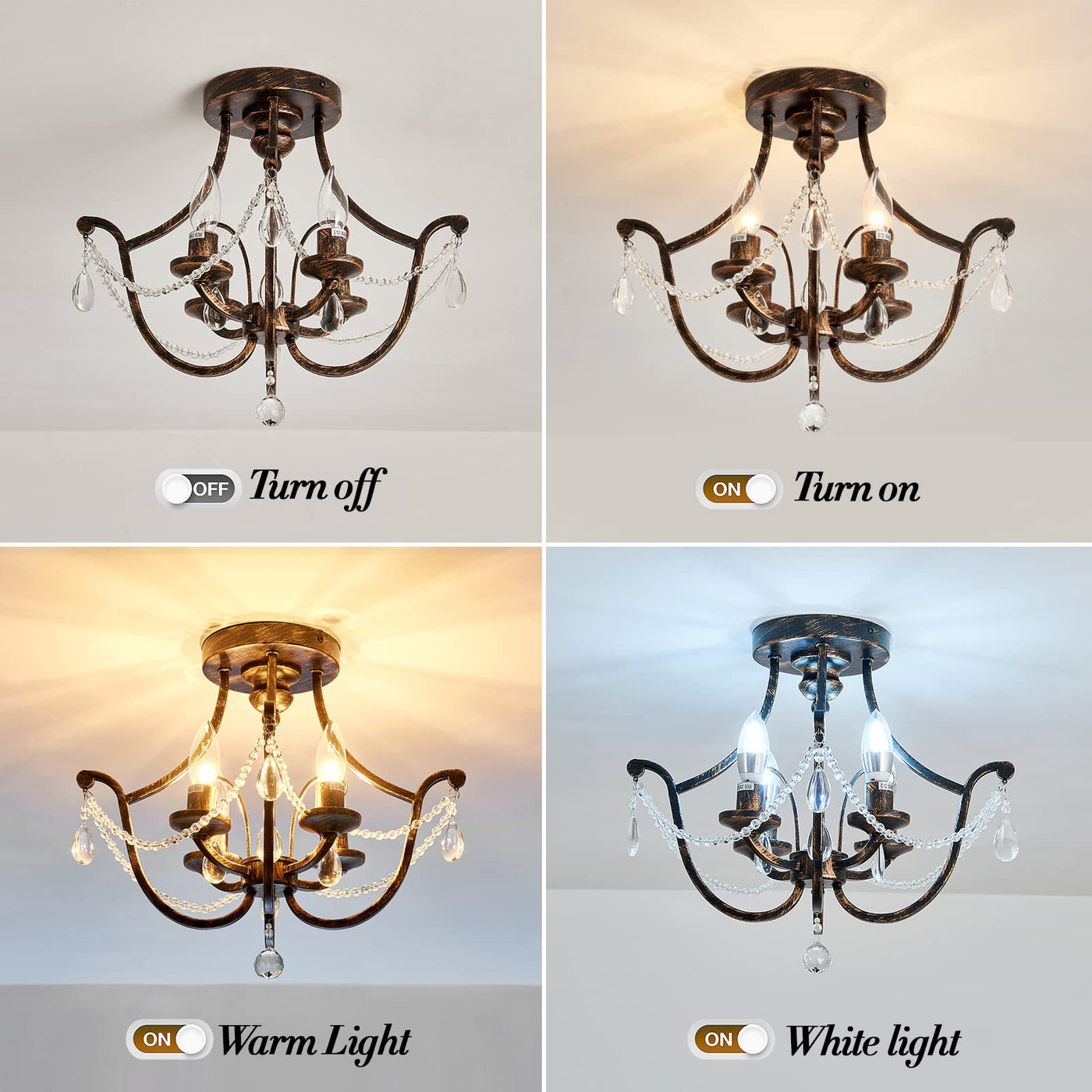 Uofus Vintage Semi Flush Mount Crystal Chandelier Oil Rubbed Bronze 4-Light Small Metal Ceiling Light Fixture Farmhouse Ceiling
