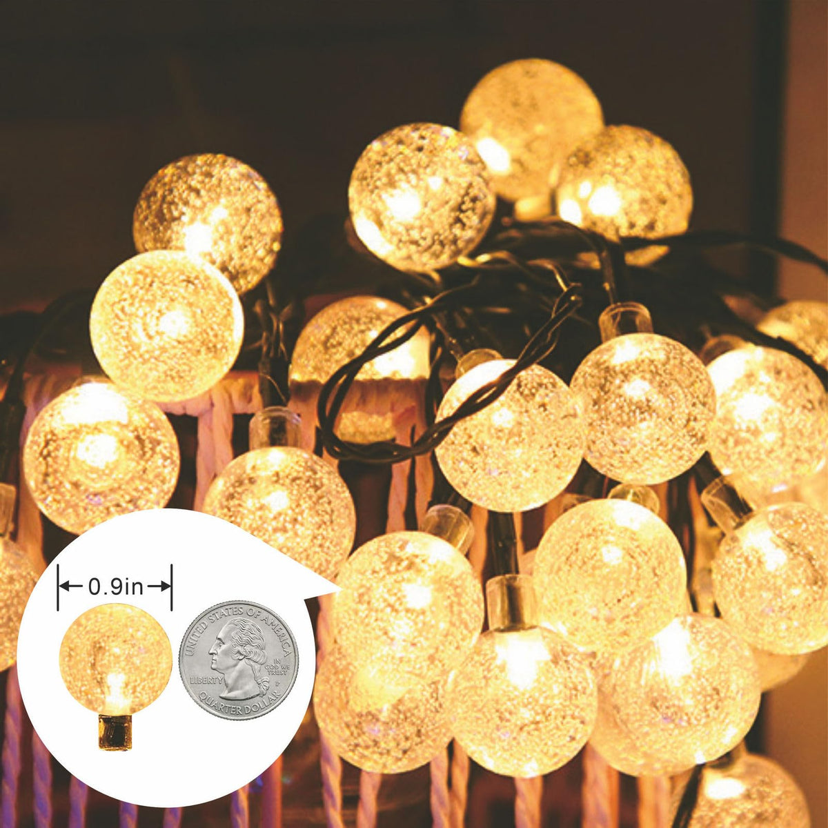 Updated Solar String Lights - Outdoor Waterproof 2 Pack 120 Led 72Ft Warm White Big Ball Led Christmas Lights For Garden, Lawn,