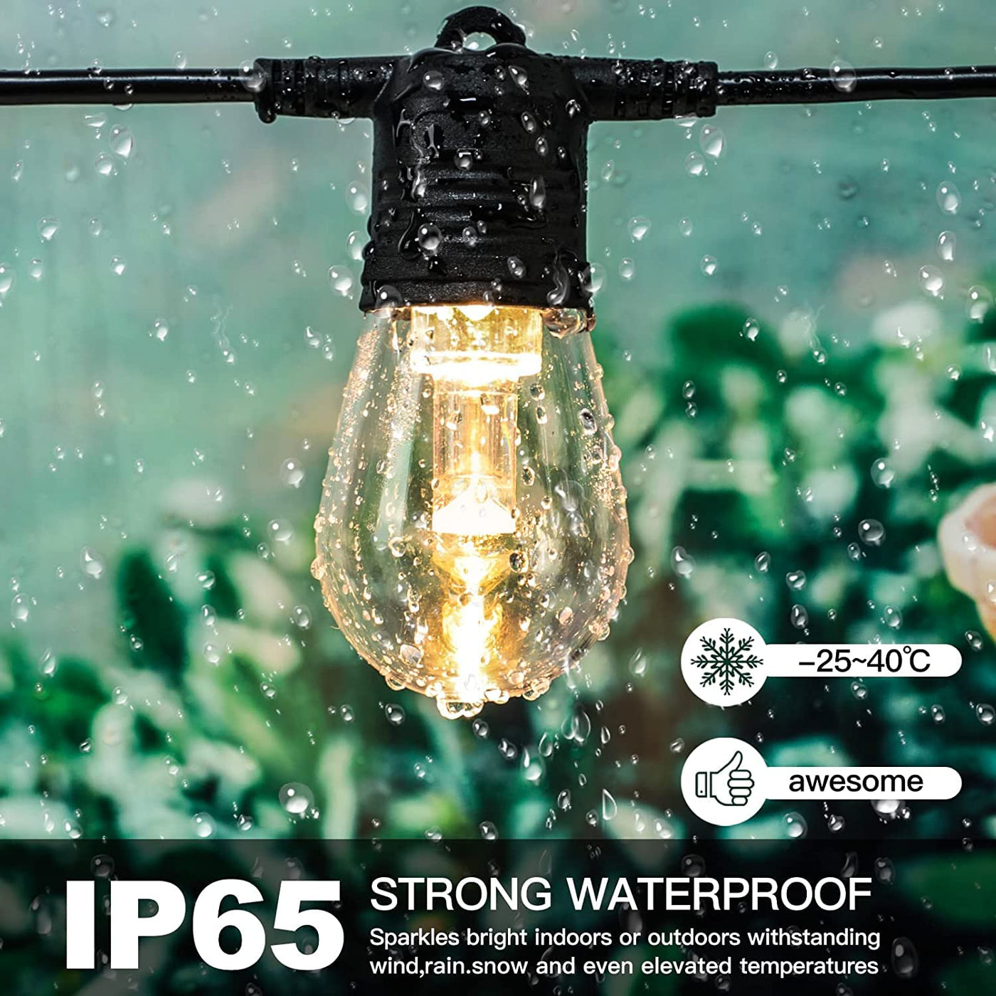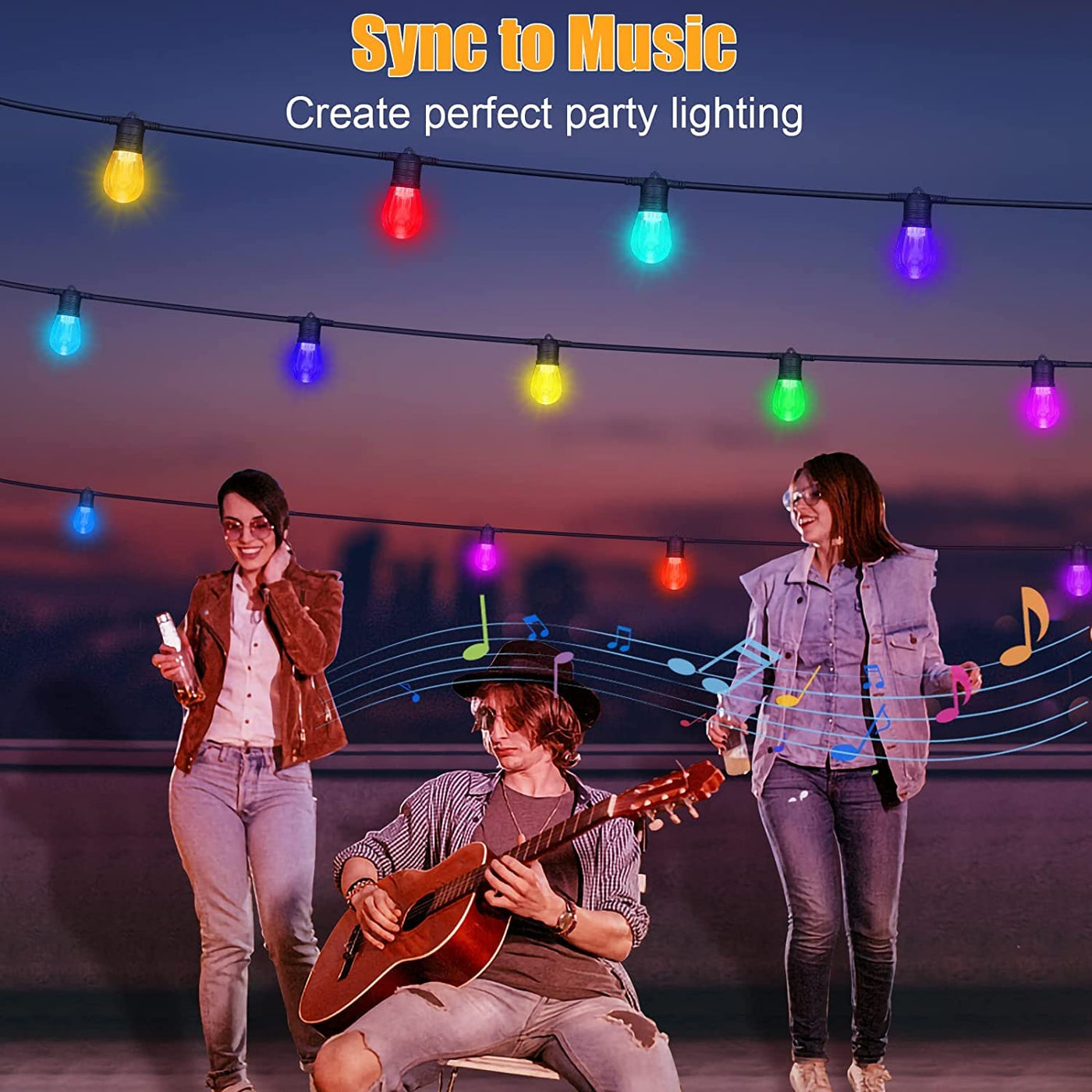 UPGRADED SUPER BRIGHT LED STRING LIGHTS :Our strong R&D team has upgraded the performance based on the same product on the market.Adopt RGBCW Technology 2700K-6500K dimmer brightness, Customize each bulb DIY Mode With 16 million vivid colors and 50 vibrant scene modes for patio decks restaurants bars cafe and boat.The colored lights as outdoor decorations will shine on festive occasions.