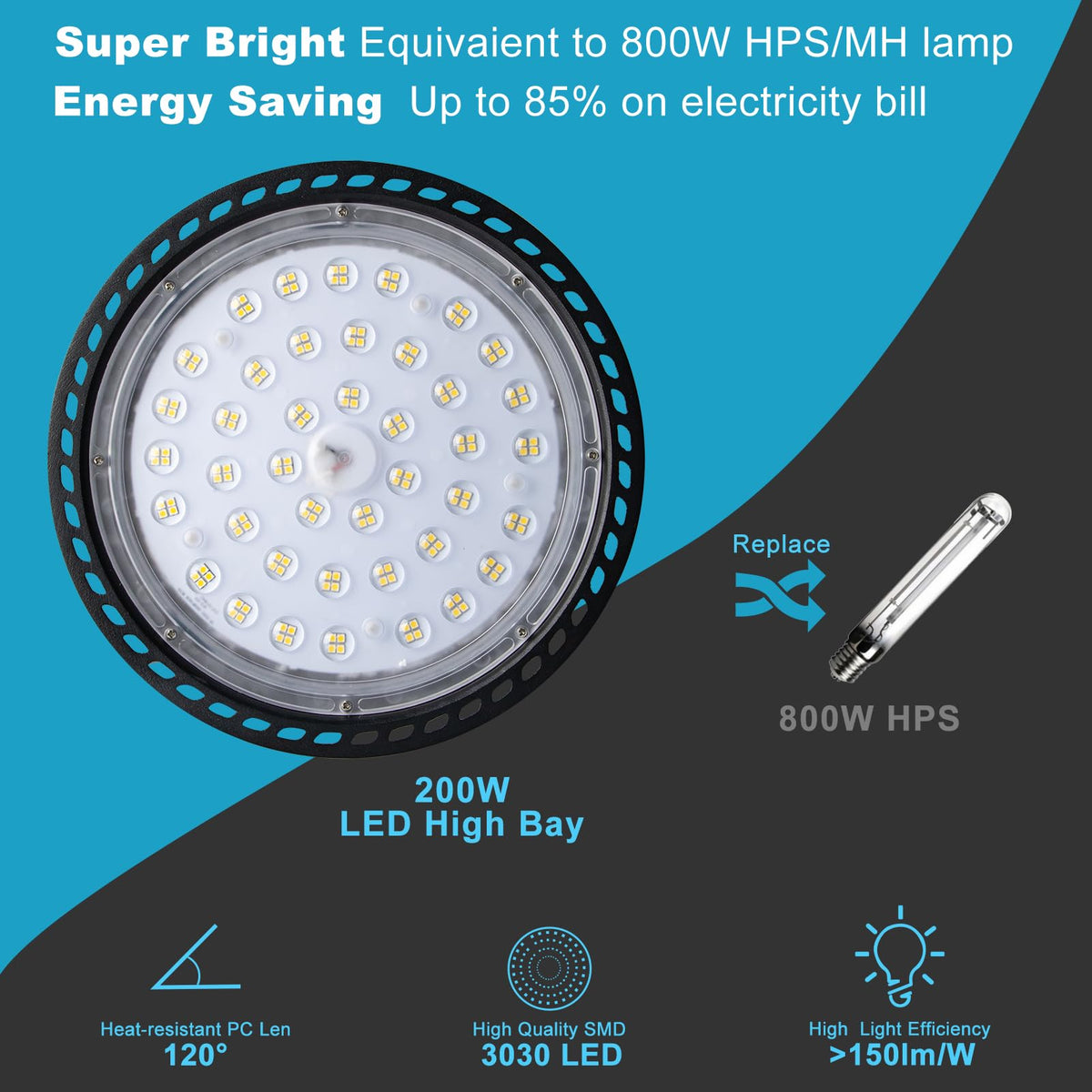 Upgrade 200W High Bay Led Shop Light 30000Lm (Eqv.800W Mh/Hps) Ufo High Bay Lighting, Etl Ufo Lights Ac100-277V High Bay Led Lig