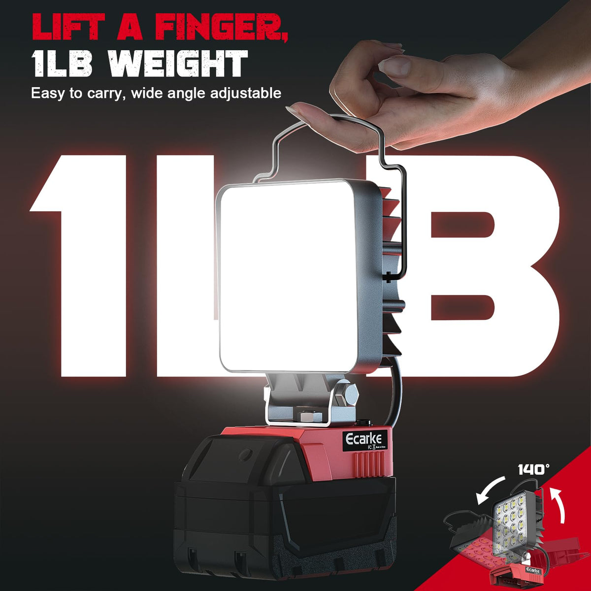 Upgrade Dual Switch Cordless Work Light For Milwaukee M18 Light,Ecarke 4800Lm Led Work Light For Milwaukee Battery Flashlight,With Dual Charging Port For Camping,Hiking,Job Site & Security Lighting
