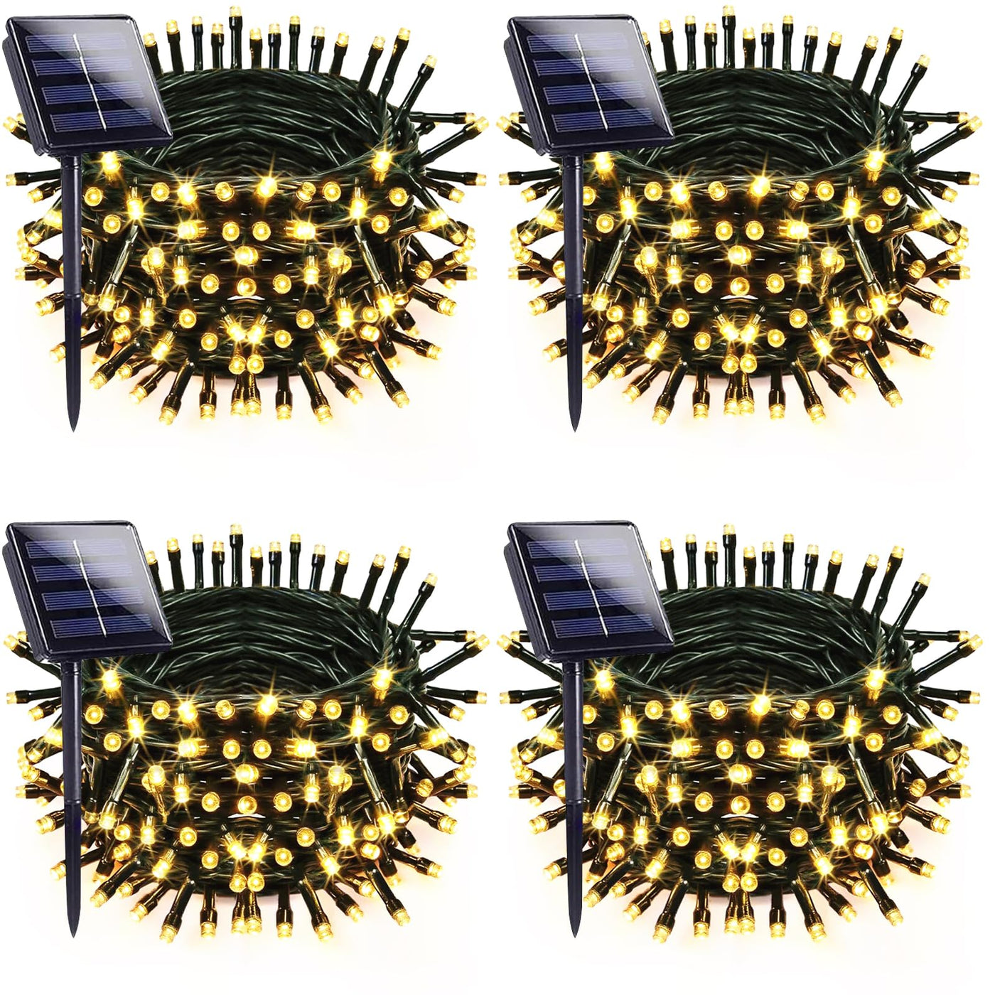 Upgraded 4 Pack 160Ft 400 Led Solar Christmas Lights Outdoor Solar String Lights With 8 Lighting Modes Waterproof Solar Fairy Lights For Garden Yard Patio Christmas Tree Decoration (Warm White)