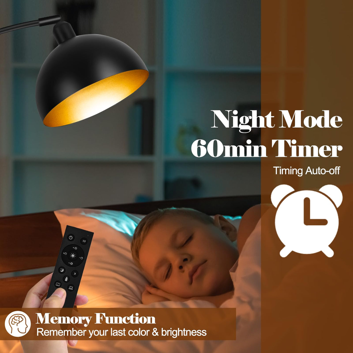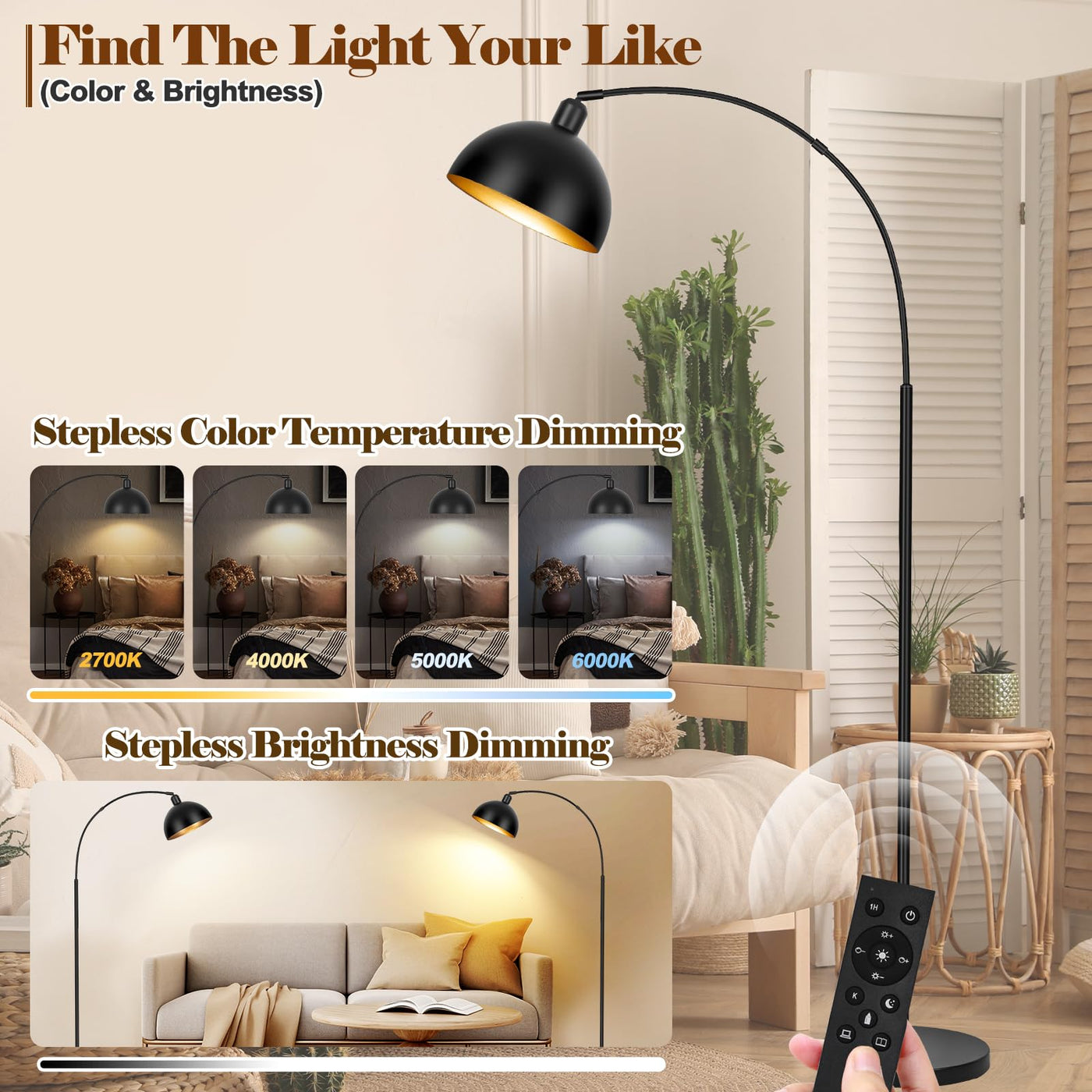 Why Opt For Our Modern Dimmable Arc Floor Lamp? ?Chic &Amp; Modern Design?With A Stylish Arch Design, Our&Nbsp;Floor Lamp Elevates Your Space With A Modern Sophisticated Touch, Enhancing The Cozy Ambiance Of Any Room. Its Versatile Style Seamlessly Harmonizes With Various Decor Themes, From The Rawness Of Industrial Chic To The Simplicity Of Mid-Century Modern. Thoughtfully Crafted, Its Design Allows For Optimal Placement Without Claiming Much Space. Introduce A Blend Of Style And Utility To Your Living Spaces With Our Elegantly Designed Tall Lamp Features Stepless Dimming: Our Black Modern Floor Lamp Offers A Fully Stepless Dimming Pattern From 0 To 100%. Tailor Your Brightness To Your Preference With A Simple Rotation Of The Switch. Fully Adjustable: Designed With A Head That Rotates 360 Horizontally And 180 Vertically, Our Arched Standing Lamp Can Be Adjusted To Any Angle, Perfect For Reading And Working Tasks. Smart Dimmable Bulb Included: With A 900 Lumens Bulb Included, It Provides Flicker-Free Illumination, Perfect For Reading, Studying, And Protecting Your Eyes. Dual Switch System: Equipped With A Remote Control And Built-In Foot Switch For Easy On/Off Operations. Limitless Remote Control: Operate Your Lamp From Any Corner Of Your Home With A Remote Control Distance Up To 60 Feet. One-Click Operation: Select Your Preferred Lighting Environment (Work, Night, Breastfeeding, Reading) With Just One Click. A Perfect Choice For Your Smart Life. Perfect Height: Standing 70 Inches Tall, It Provides Overhead Lighting Ideal For Sofa Sitting Or Bed Lying. Secure Design: Featuring A Wider Base For Balance, There'S No Need To Worry About Safety. Simple Installation