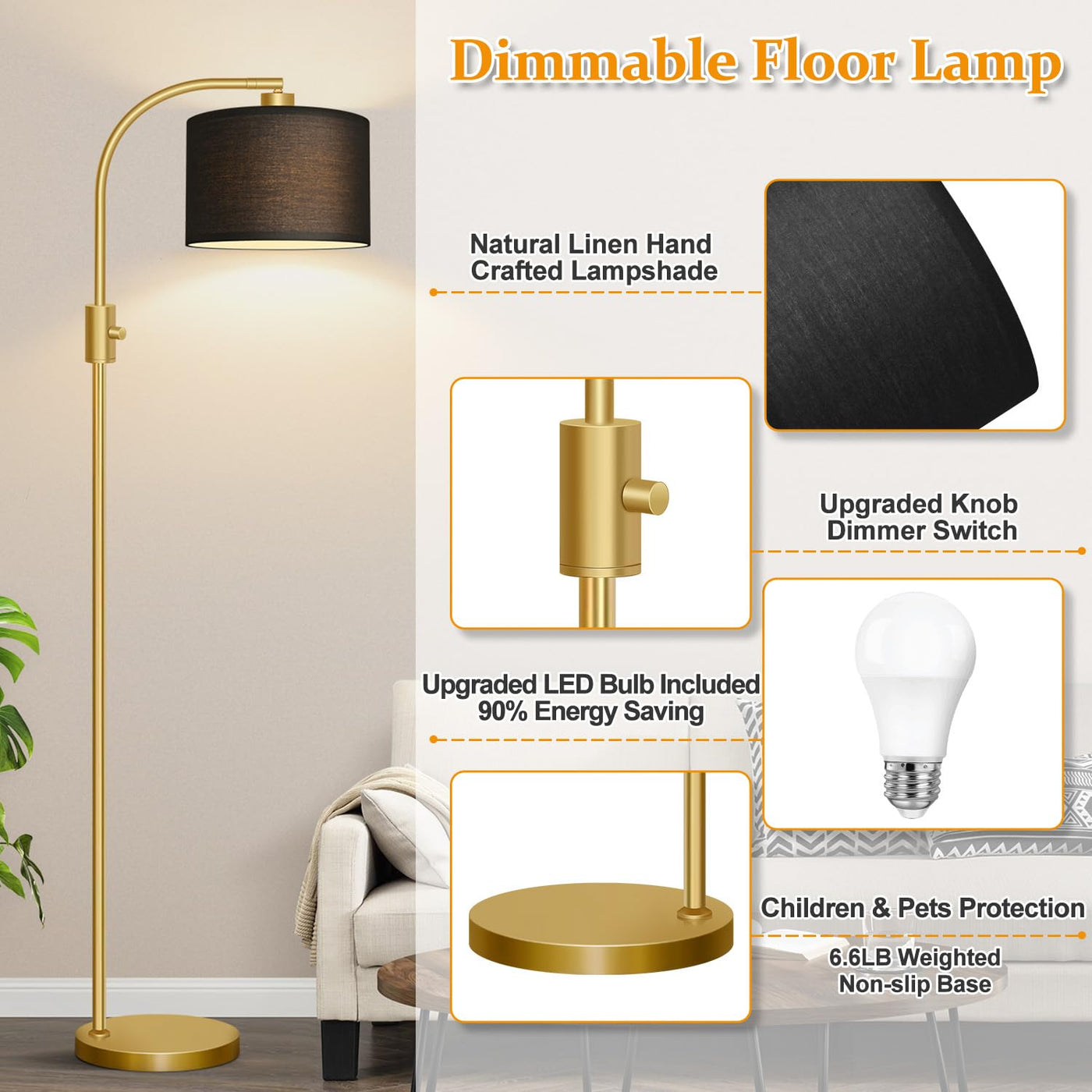 Modern Floor Lamp With 0-100% Fully Dimmable Brightness :Compared To Traditional Non-Dimmable Living Room Floor Lamps, Our Unique Floor Lamp Offers A Full Stepless Dimming Function(0 - 108%), Making It Adaptable To Various Room Styles And Lighting Requirements You Need. This Gold Floor Lamp Has A Convenient Knob Switch - Simply Twist It To Customize Your Favorable Lights Of Floor Lamps For Living Room And Bedrooms | Flexible Lampshade With 360