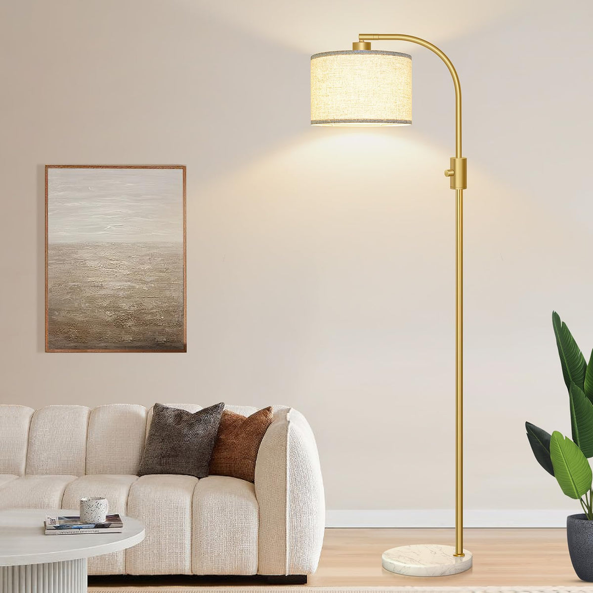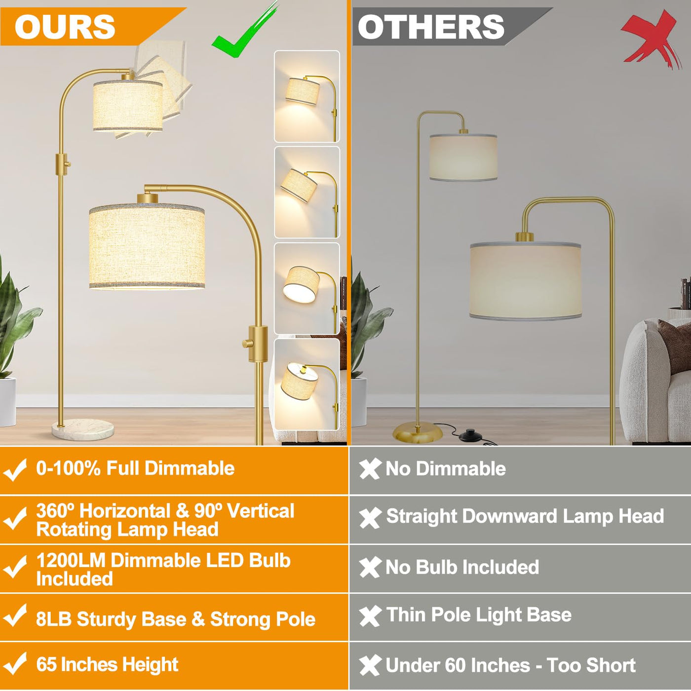 Modern Floor Lamp with 0-100% Fully Dimmable Brightness :Compared to traditional non-dimmable living room floor lamps, our unique floor lamp offers a full stepless dimming function(0 - 100%), making it adaptable to various room styles and lighting requirements you need. This gold floor lamp has a convenient knob switch - simply twist it to customize your favorable lights of floor lamps for living room and bedrooms | Flexible Lampshade with 360