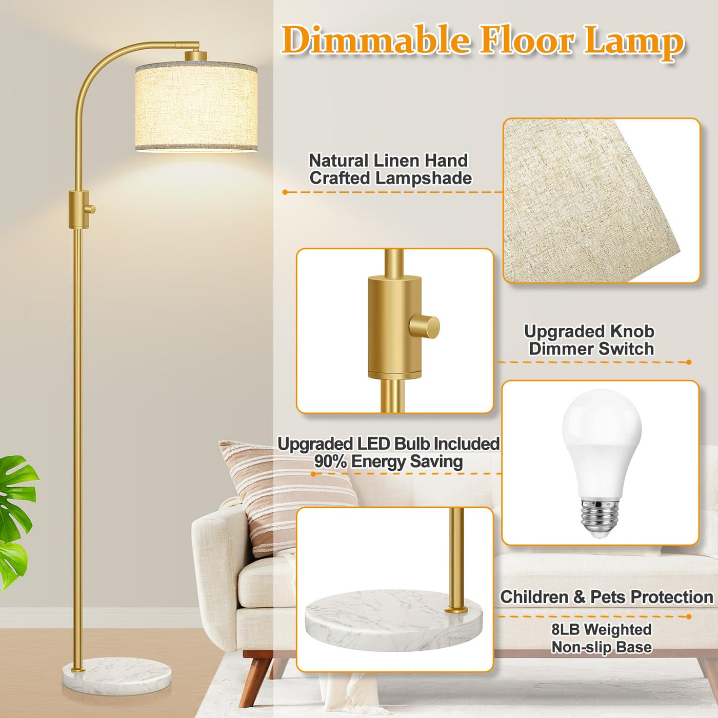?Upgraded? Dimmable Gold Floor Lamp, 1200 Lumens Led Bulb Included, Arc Floor Lamps For Living Room Modern Standing Lamp With Ma