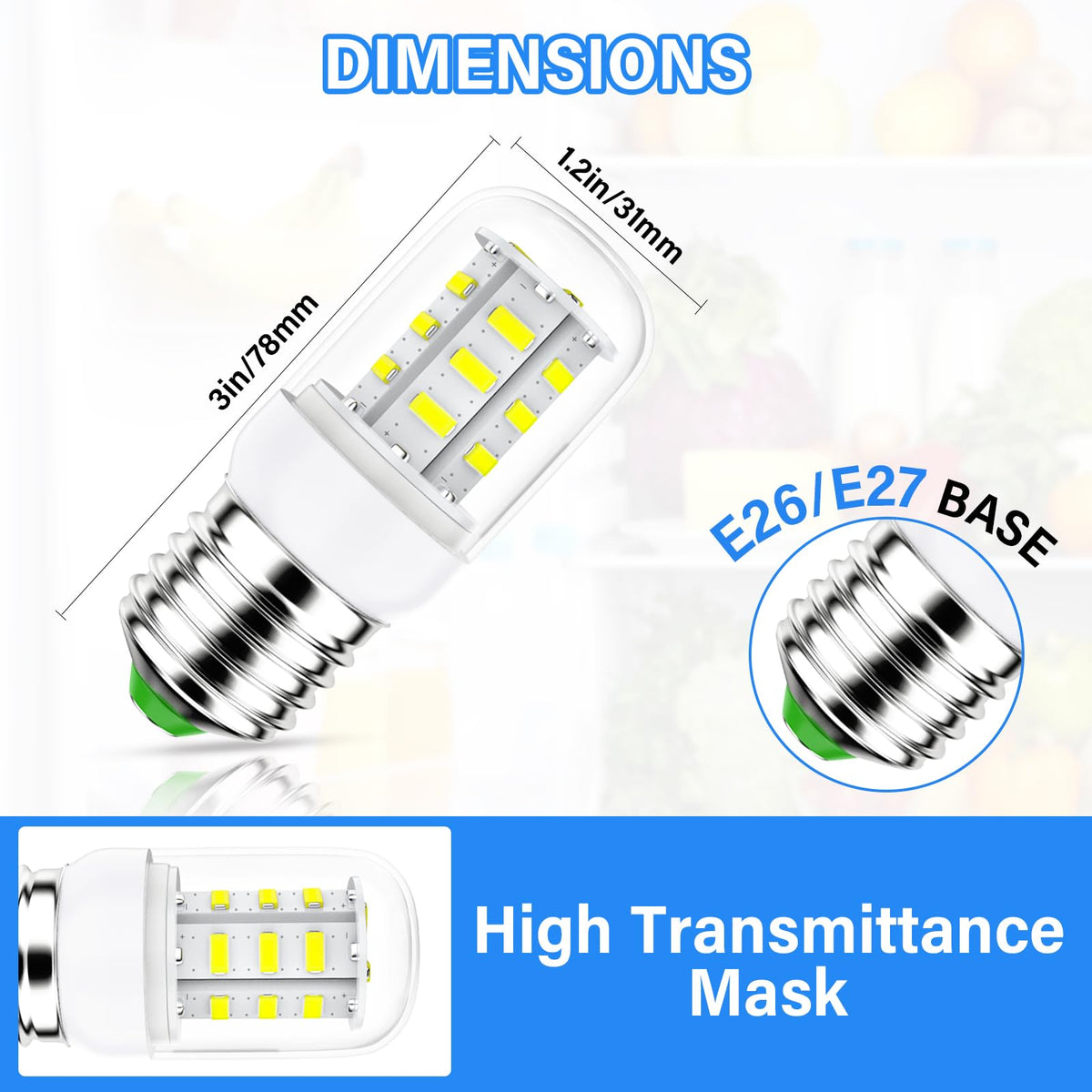 Upgraded Led Refrigerator Light Bulbs, Kei D34L Refrigerator Bulb Fit For Frigidaire Kenmore, Electrolux, Replaces Ap6278388 Ps1