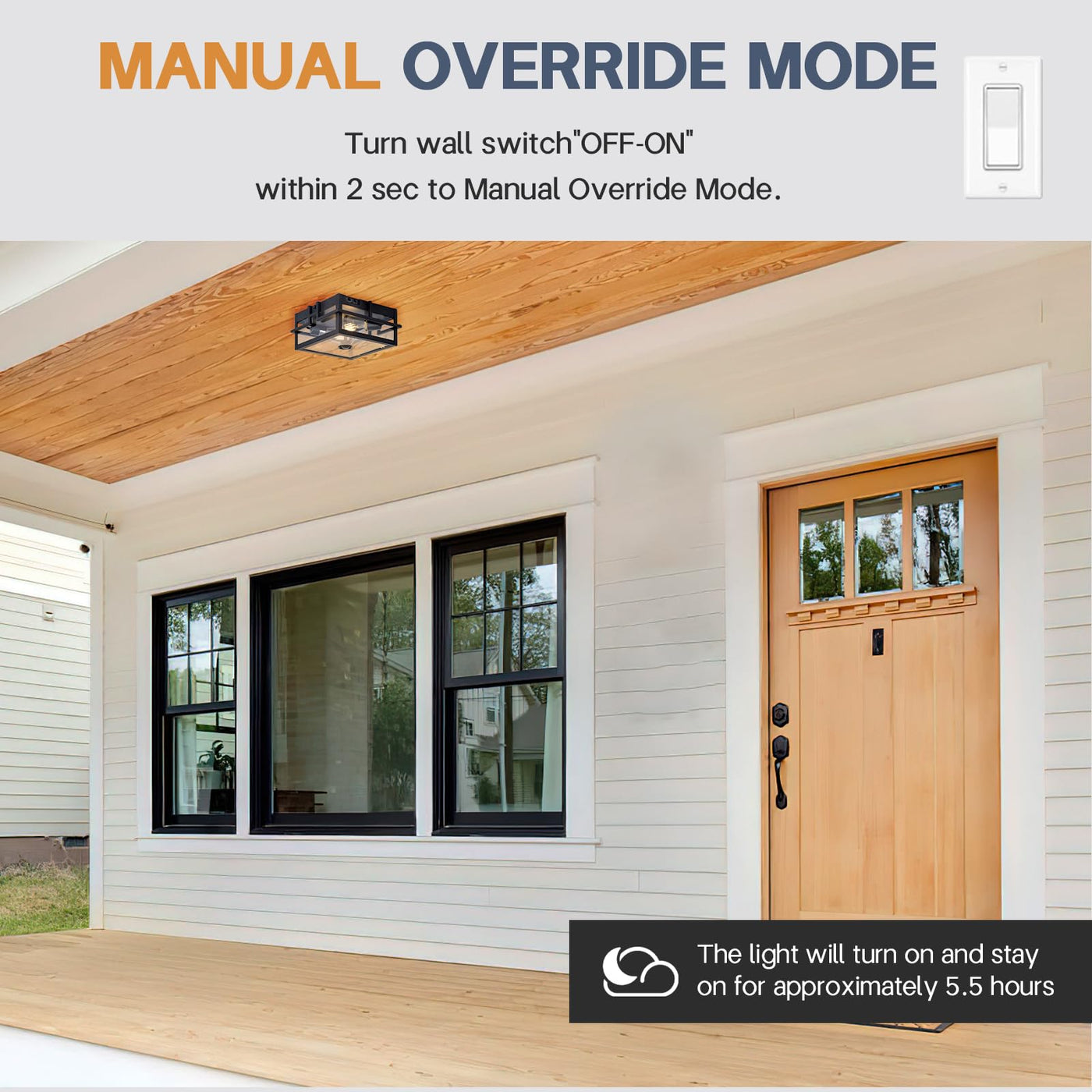 Manual Override Mode: Keeps the light on for approximately 5.5 hours, easily activated by switching ON-OFF-ON within 2 seconds.