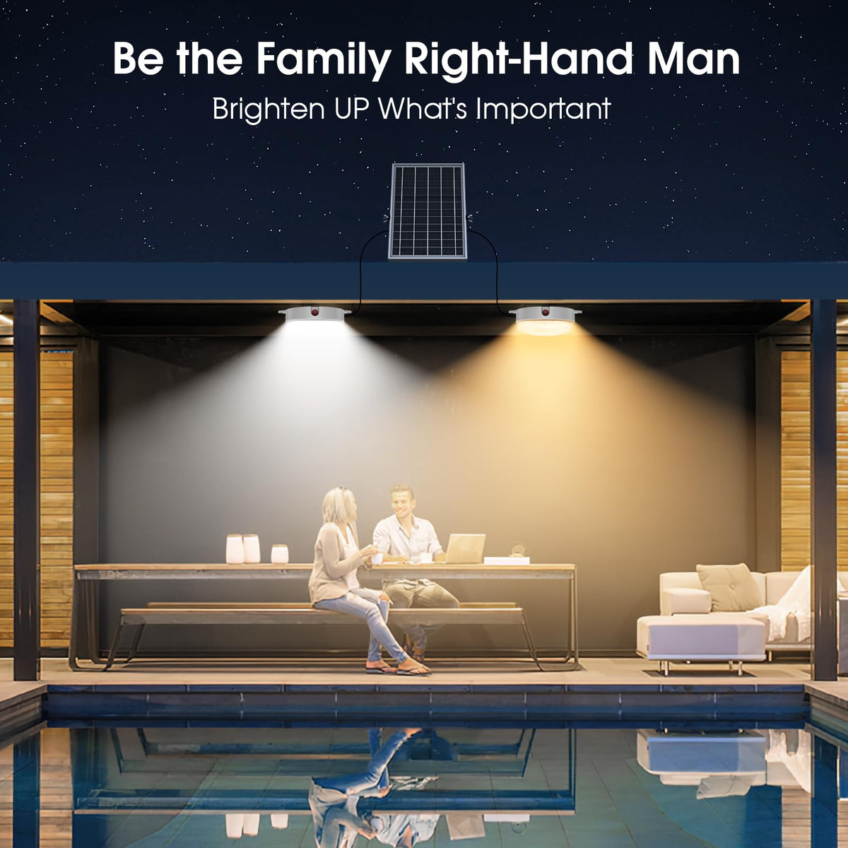UPONUN Solar Ceiling Light 2 Pack with Motion Sensor, Dimmable 6000K/4000K/3200K, Indoor/Outdoor Barn Lights with Remote, White
