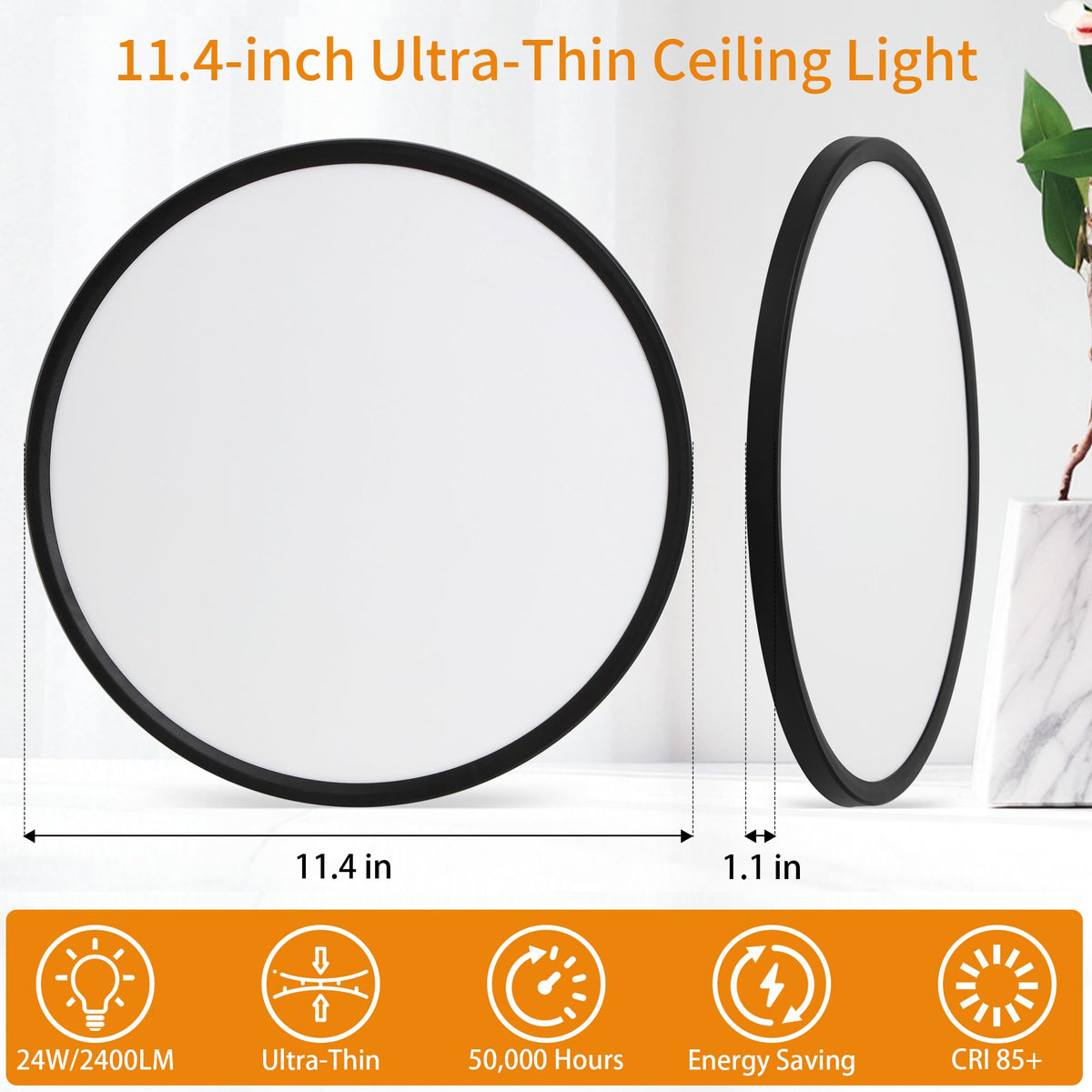UprizeP Flush Mount Ceiling Light 11in LED, 1800K Nightlight & 3000-6500K Dimmable, Black, Model SK1039