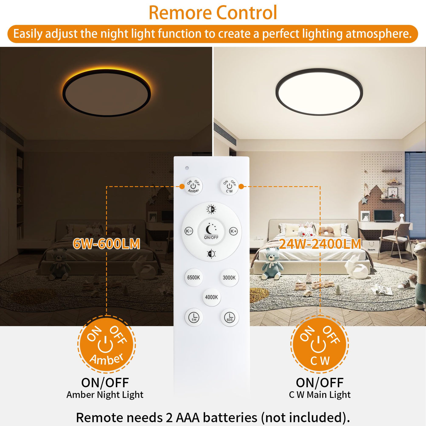 High Brightness & Performance: With 24W power and 2400 lumens brightness (6W in night light mode), this fixture is designed to illuminate larger spaces effectively.