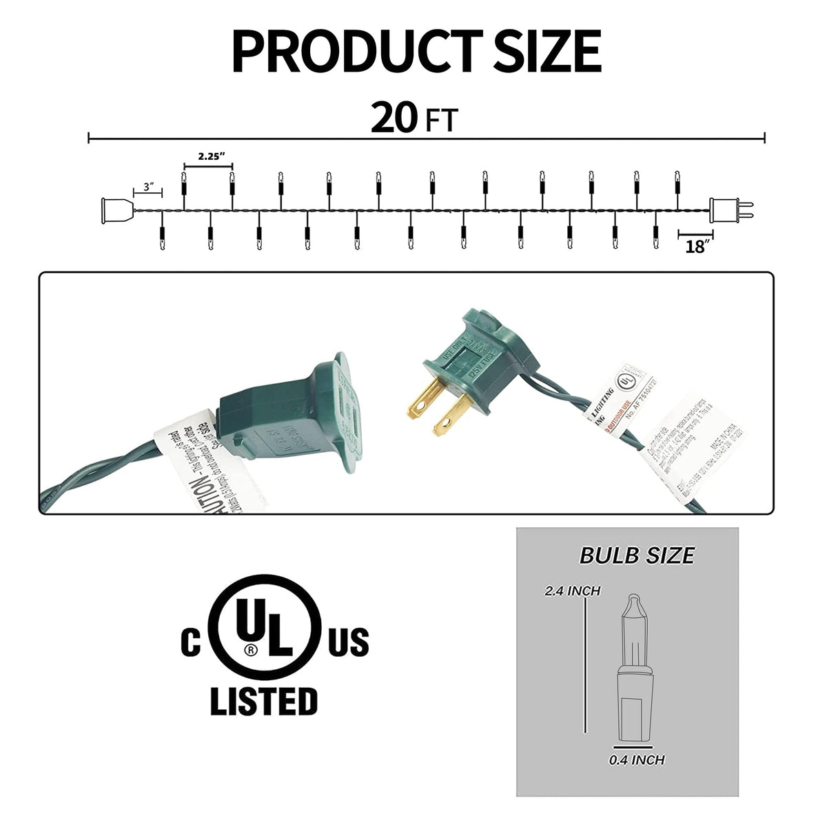 - **Perfect Dimensions**: With a total length of 20 feet and each bulb spaced 2.25 inches apart, these lights are easy to hang or place around trees, shrubs, and other decorative elements, allowing for versatile decorating options.