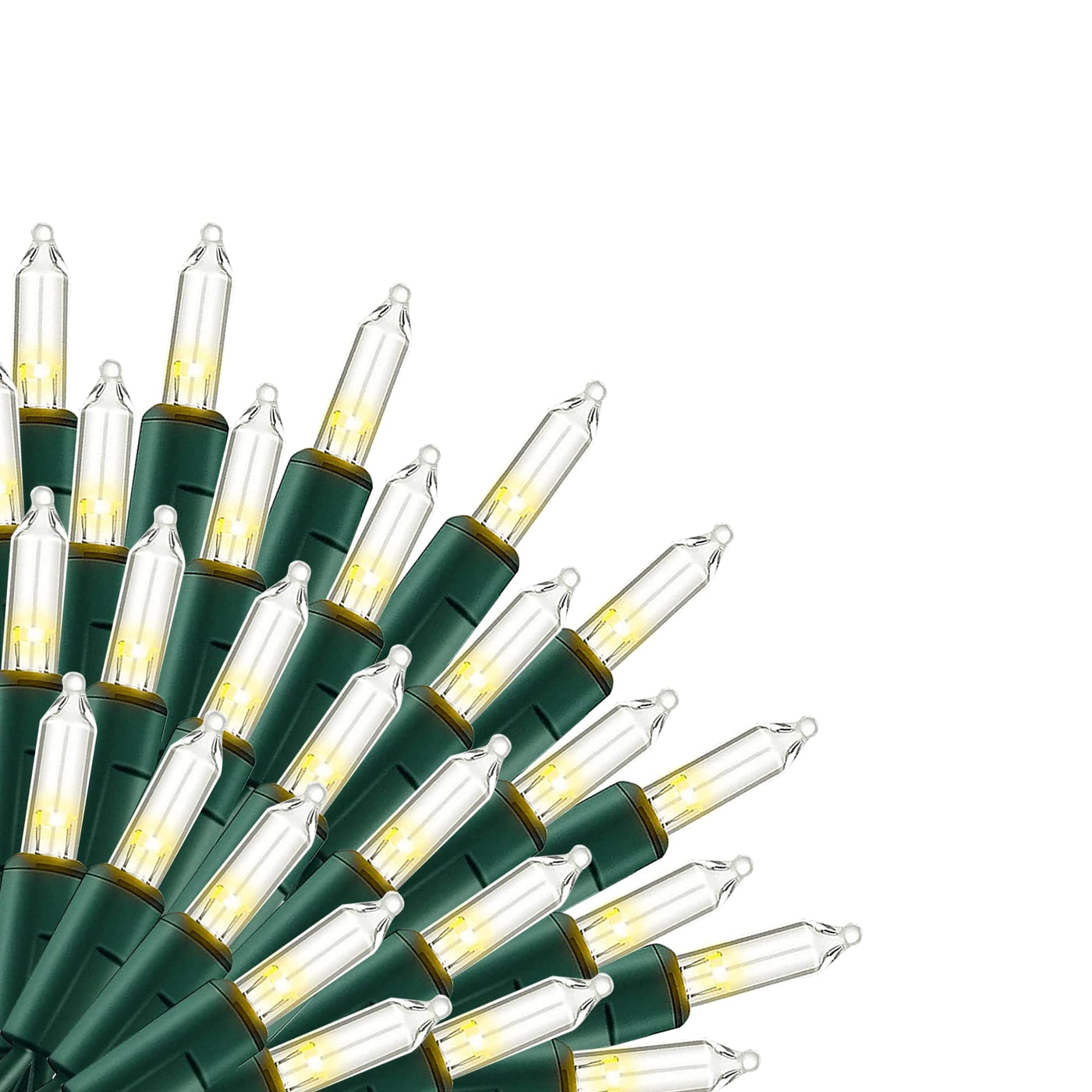 Q: How many lights are included in this string light set?A: This set includes 100 warm white LED lights, providing ample illumination for festive occasions.