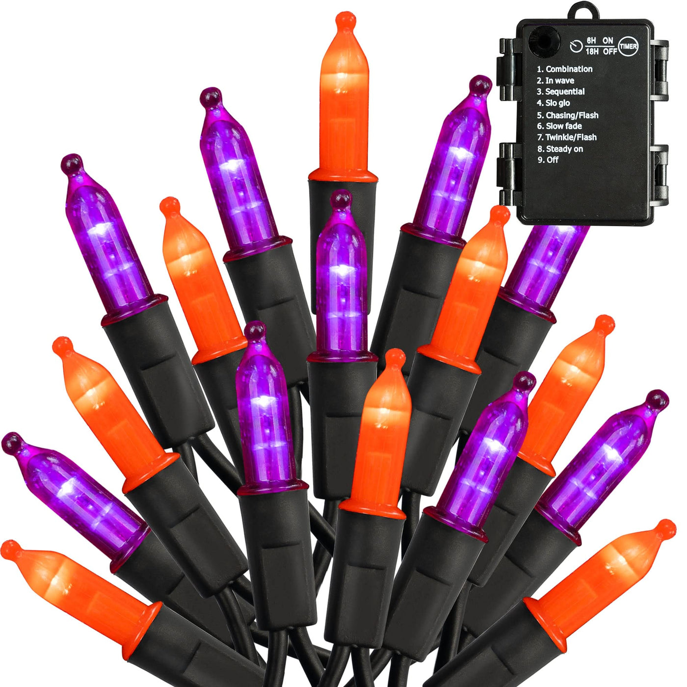 Uptotop Halloween Lights, 50 LED 16FT Battery Operated Mini String Lights, Halloween Decorations for Indoor Outdoor Home Room Garden Party (Purple & Orange, 1)