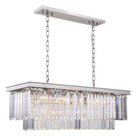 Q: What styles of decor does the Sydney Chandelier complement?A: The Urban Classics Sydney Chandelier, with its polished nickel finish and royal-cut crystals, complements a variety of decor styles, especially those inspired by the Roaring Twenties, making it a stunning centerpiece for both modern and traditional interiors.