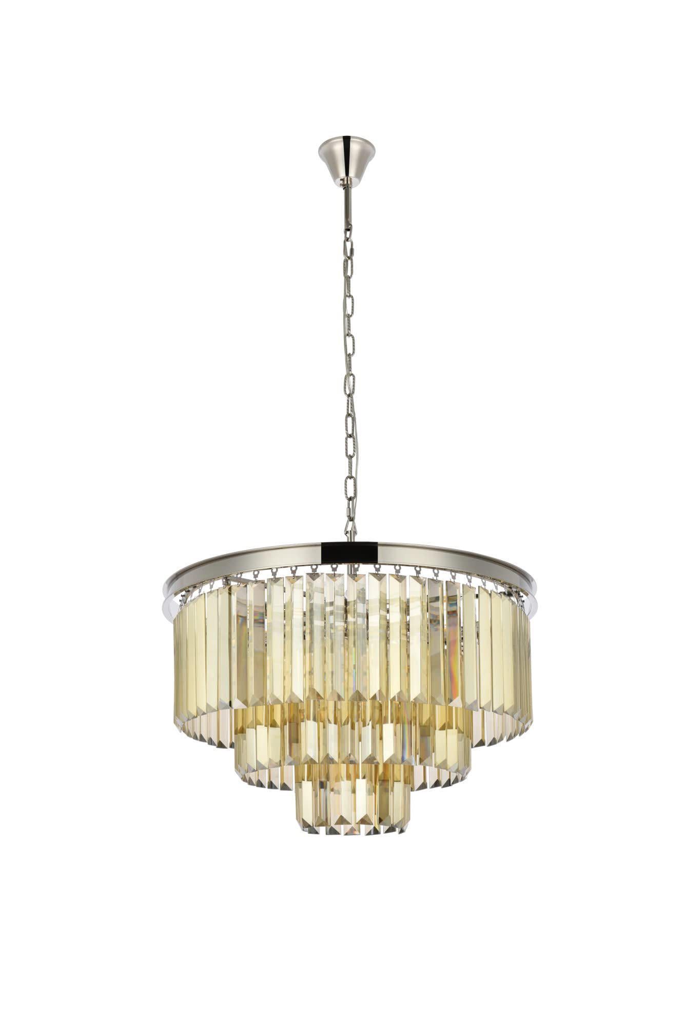Bring the elegance of the Roaring Twenties into your home with the stunning Sydney chandelier from Urban Classics. This exquisite lighting fixture is designed to be the centerpiece of any room, making a bold statement in foyers, dining rooms, or stairwells. With its glimmering tiers of royal-cut golden-teak crystals, this chandelier not only illuminates your space but also adds a touch of glamour and sophistication.