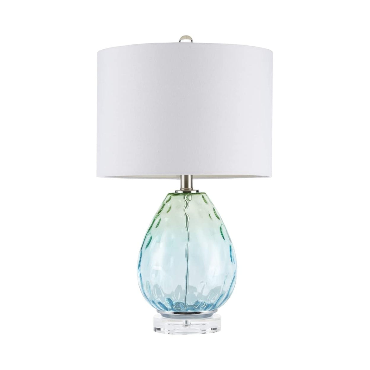 - **Chic and Modern Design**: The Borel Ombre Table Lamp features a captivating ombre effect, transitioning from light green at the top to aqua at the bottom, adorned with textured ripples and sleek silver metal accents. This unique design adds a stylish flair to your home.