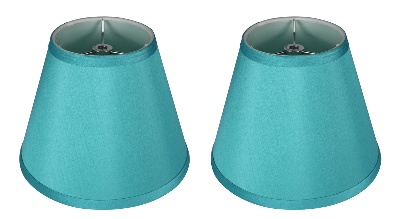 Urbanest Set Of 2 Coolie Hardback Lampshade, Check The Size Please, Faux Silk, 5 Top, 9 Bottom, 7 Slant, Teal, Spider Washer Fit