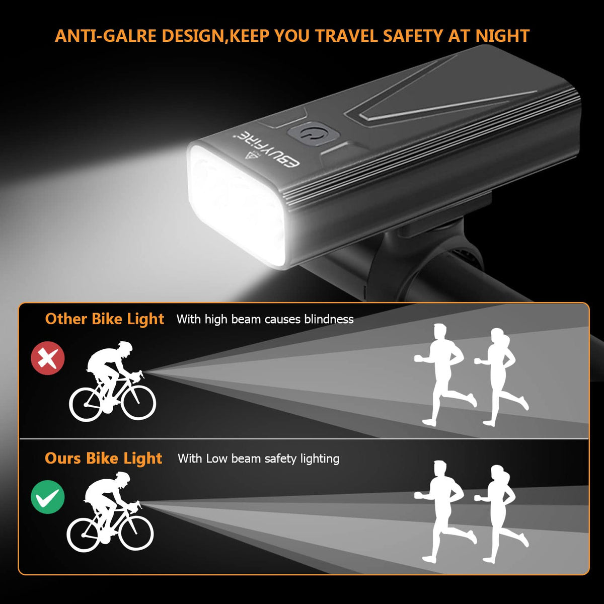 Q: Can I charge my phone using the bike light?A: Yes, the bike light comes with a built-in rechargeable battery and a USB 5V1A output, enabling you to charge your phone or bike computer while on the go.