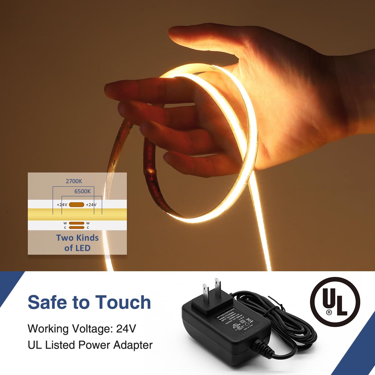 - **Safe & Durable Design:** Operating on a low voltage of 24V, this LED strip generates minimal heat, making it safe to touch and use in various settings. ETL & FCC certifications guarantee its quality and longevity, ensuring your investment lasts.